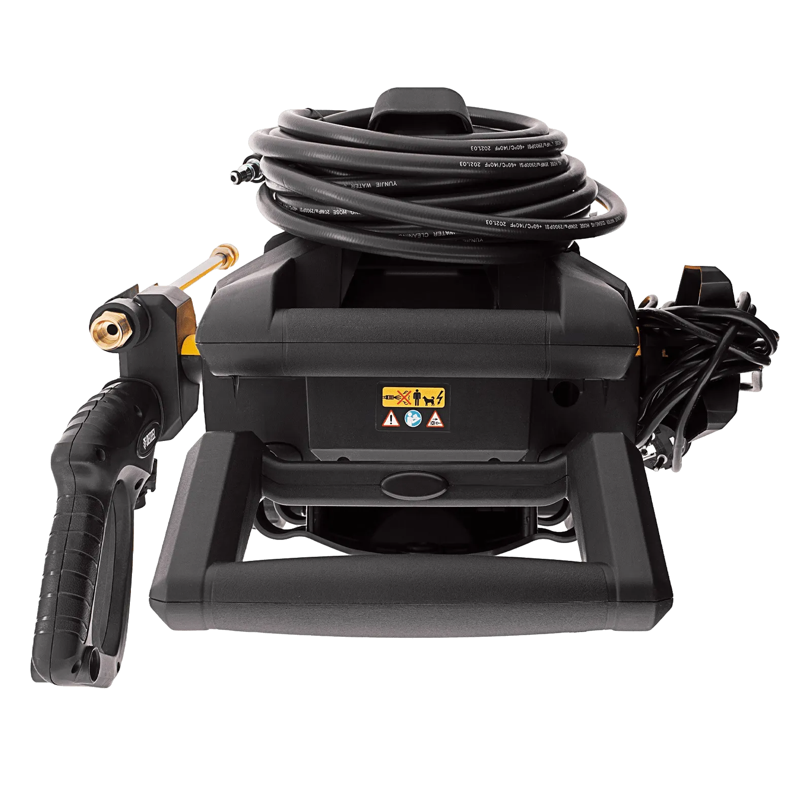 - Удобное хранение — мойка оснащена держателем пистолета и кронштейном под кабель.