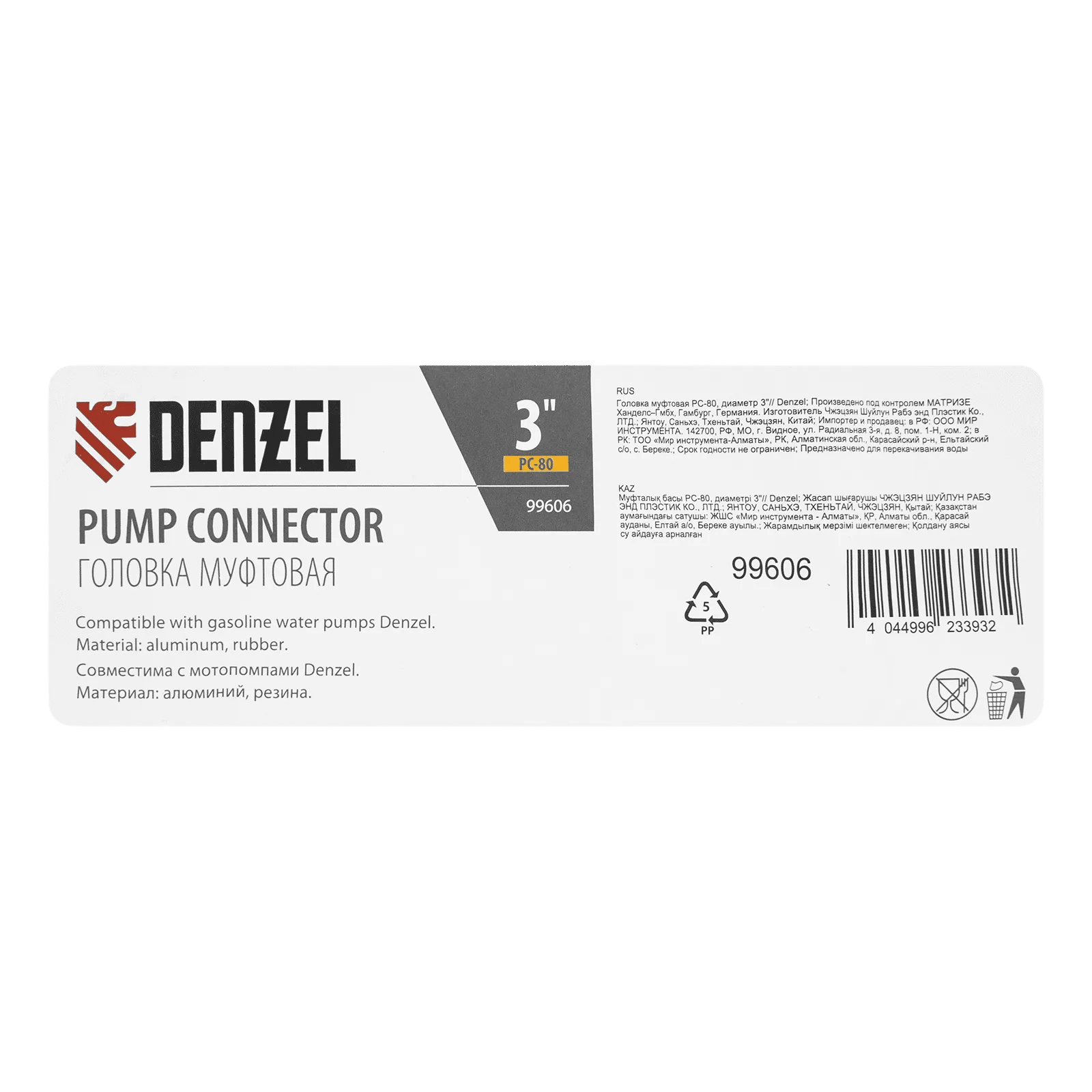 Муфтовая головка Denzel PC-80 99606 с присоединительным диаметром 3" предназначена для соединения выходного патрубка мотопомпы с напорным рукавом. Подходит к моделям Denzel 99202 и 99204. Используется для организации систем полива, водоснабжения, пожаротушения.
