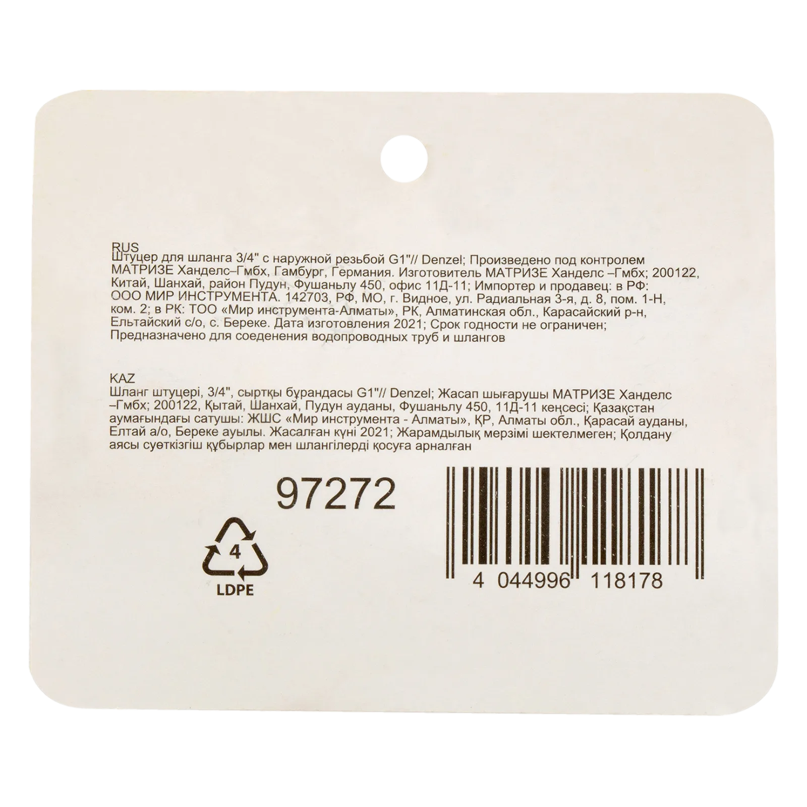 Штуцер Denzel 97272 с наружной резьбой G1 предназначен для плотного соединения насоса или насосной станции с садовым шлангом диаметром 3/4 дюйма. Используется для организации системы откачки воды или полива на дачном участке.