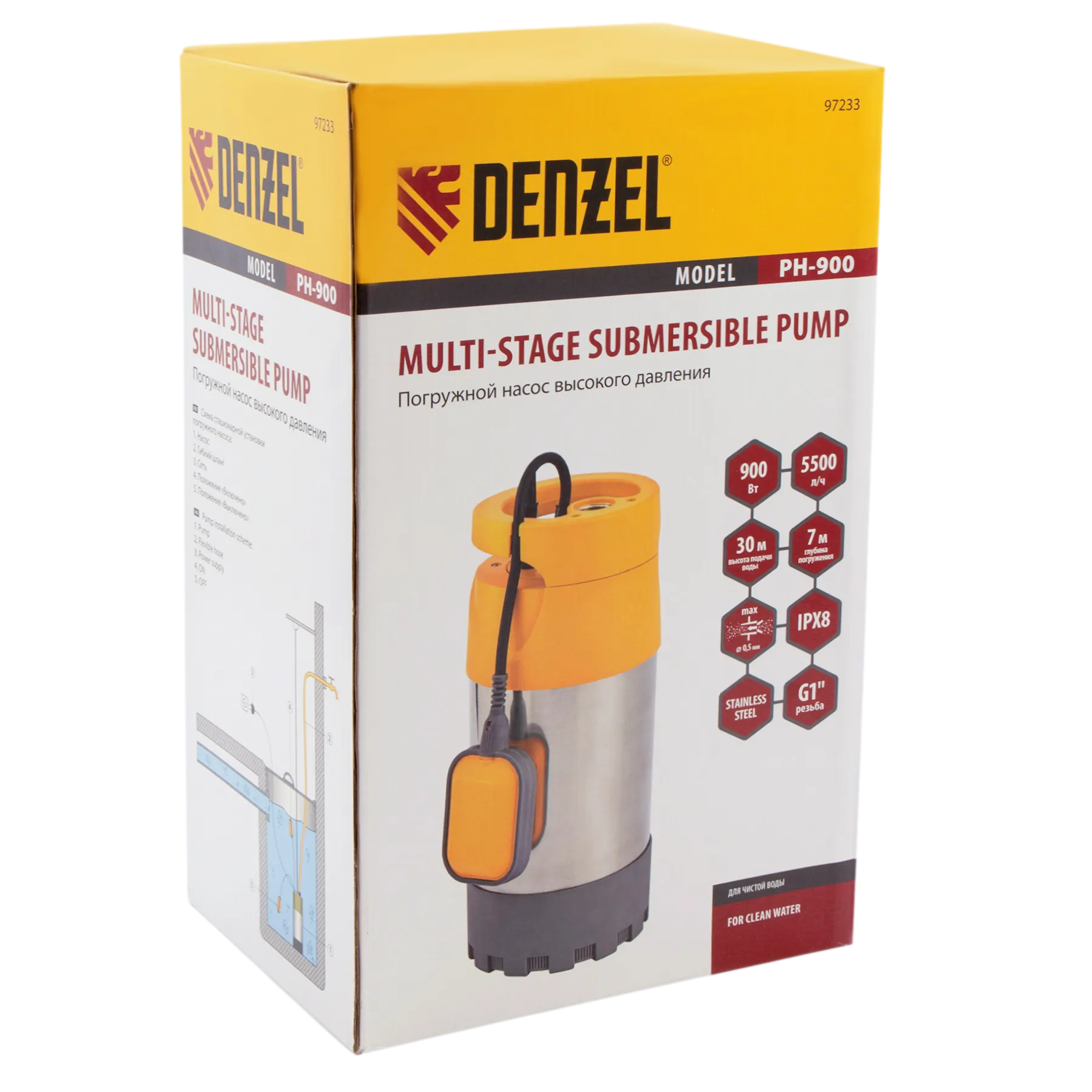 Погружной насос высокого давления Denzel PH900 97233 мощностью 900 Вт и производительностью 5500 л/ч обеспечивает напор до 30 м и используется для подъема чистой воды из колодцев, резервуаров и водоемов с глубины до 7 м. Скорости работы до 91 л/мин достаточно для организации системы орошения и водоснабжения в частном доме с несколькими точками разбора воды. Высота напора до 30 м позволяет использовать насос в местах, где источник воды находится далеко, или для повышения давления в водопроводной системе.
