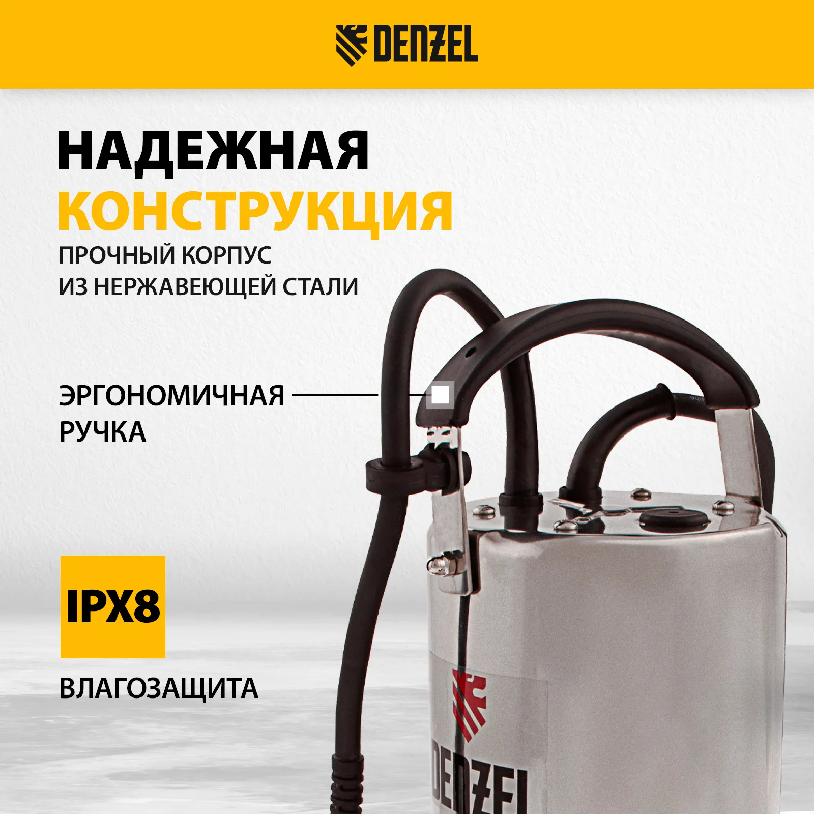 Дренажный насос Denzel DP1100X 97224 мощностью 1100 Вт и производительностью 15500 л/ч, с высотой подъема 11 м, используется для организации системы водоснабжения и полива. Также обеспечивает эффективное отведение грязной воды с содержанием частиц до 35 мм из подвалов и резервуаров.