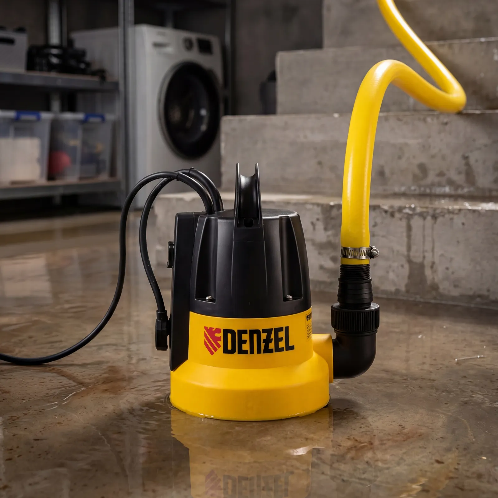 Дренажный насос Denzel DP500E 97218 мощностью 500 Вт обеспечивает высоту подъема 7 м и производительность 7000 л/ч. Используется для подачи чистой воды из колодцев и организации систем полива.