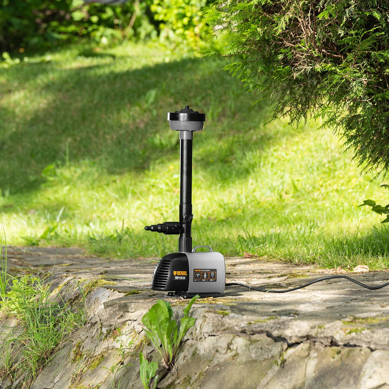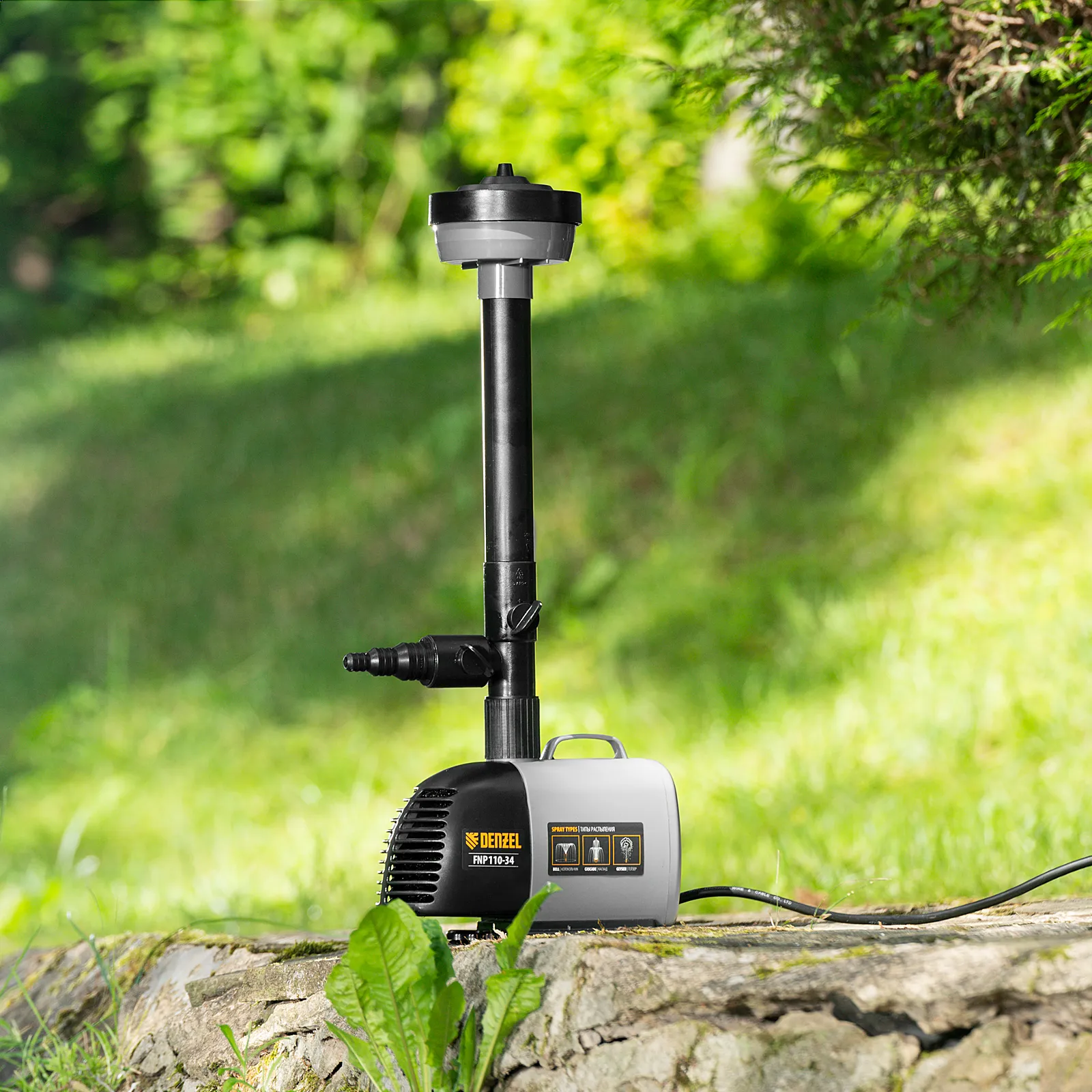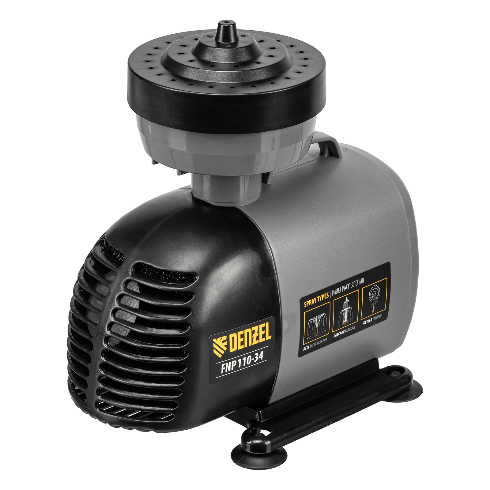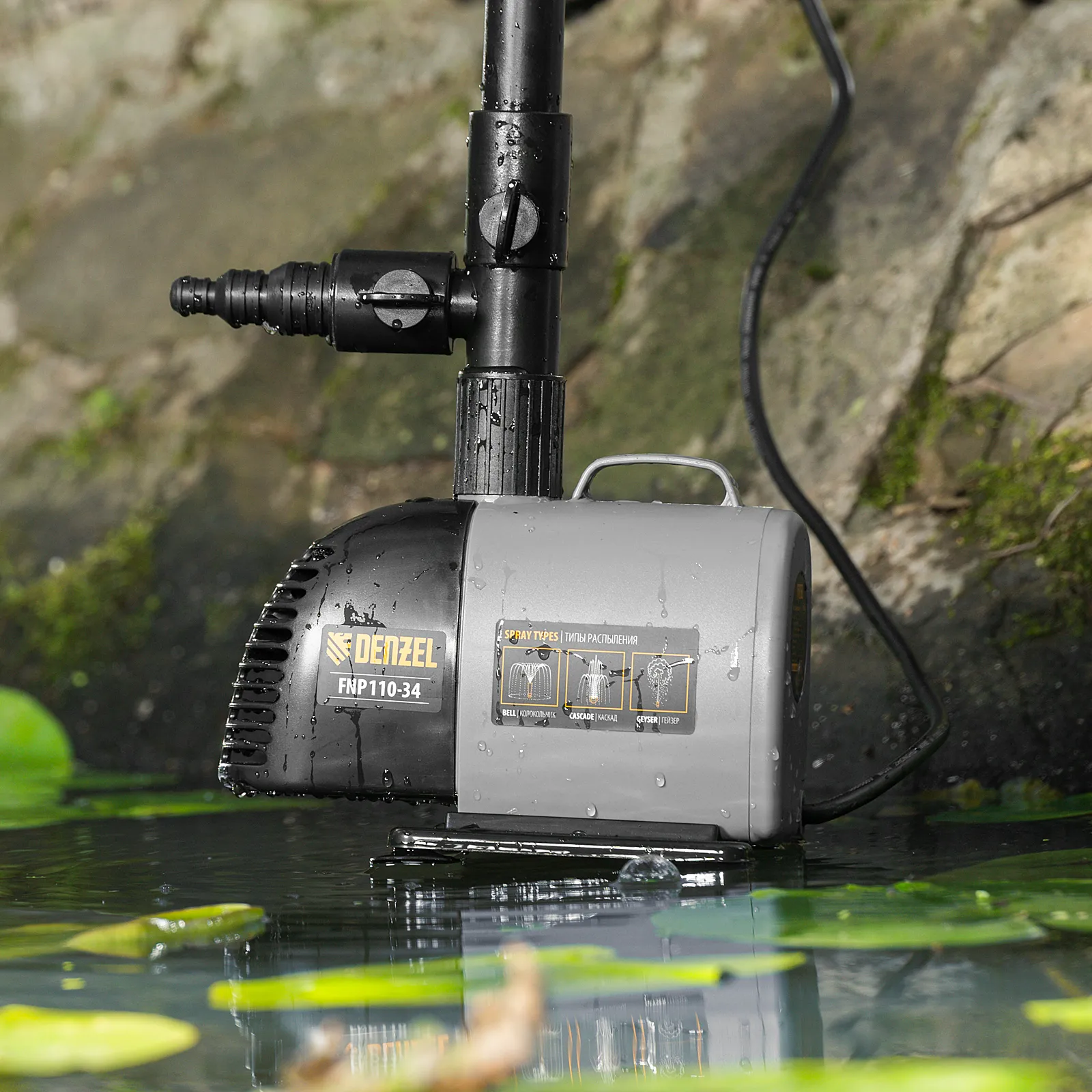 Фонтанный насос Denzel FNP110-34 99032 мощностью 112 Вт, с насадками колокольчик/каскад/гейзер, перекачивает 3400 л воды в час и обеспечивает максимальную высоту подъема 3,4 м. Позволяет создать декоративный фонтан, украсив водоем и оживив ландшафт дачного участка. Установив одну из входящих в комплект насадок, можно получить наиболее подходящий тип струи: в виде колокольчика, каскада или гейзера. Также в конструкции насоса предусмотрен специальный патрубок для создания водопада.