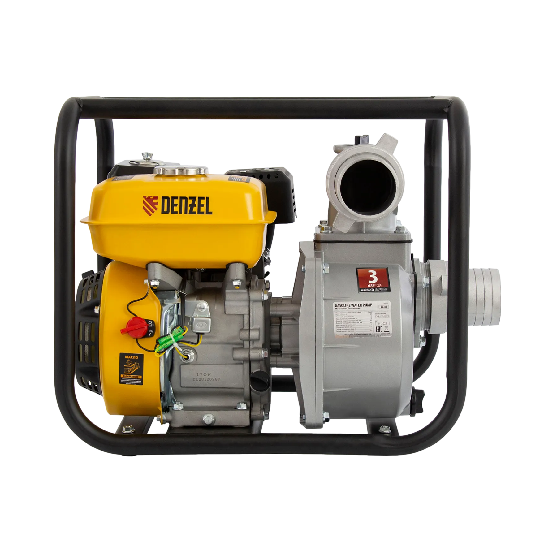 Бензиновая мотопомпа Denzel PX-80 99202 производительностью 1000 л/мин, с двигателем мощностью 7 л. с. и штуцерами диаметром 3 дюйма, осуществляет забор воды с глубины до 8 м, обеспечивает напор до 30 м и используется для подачи чистой воды на дачный участок, стройку, небольшое предприятие или в системы полива. Также легко справляется с осушением водоемов, бассейнов и затопленных помещений. Бензиновая мотопомпа работает автономно, и ее можно использовать для выездных работ.