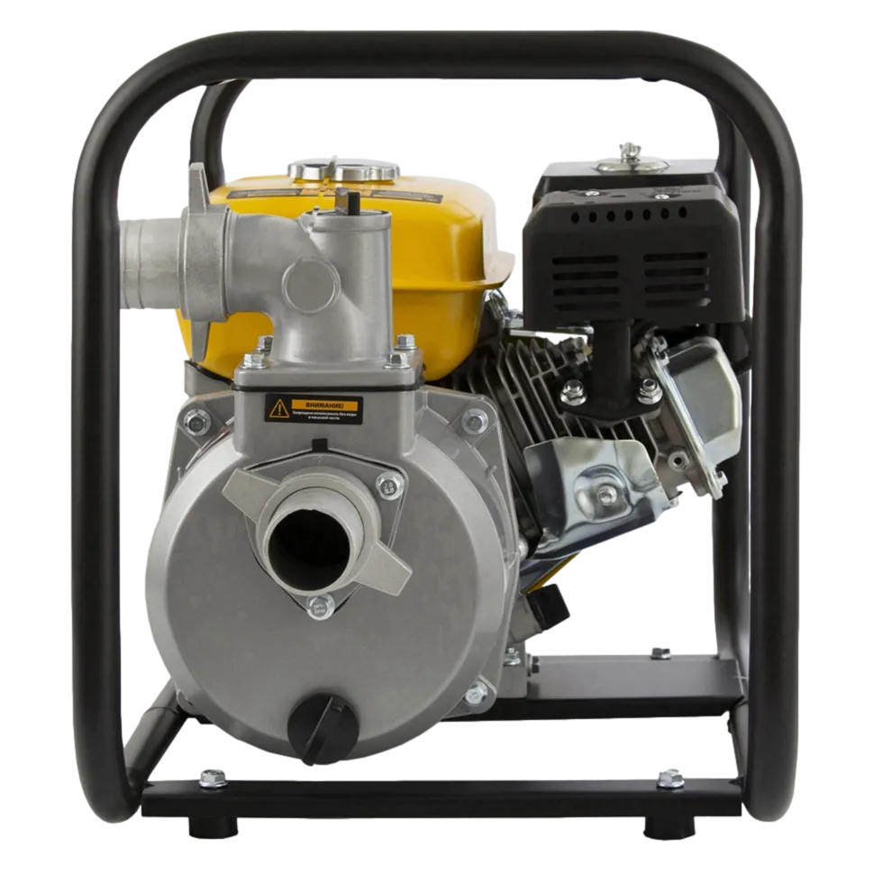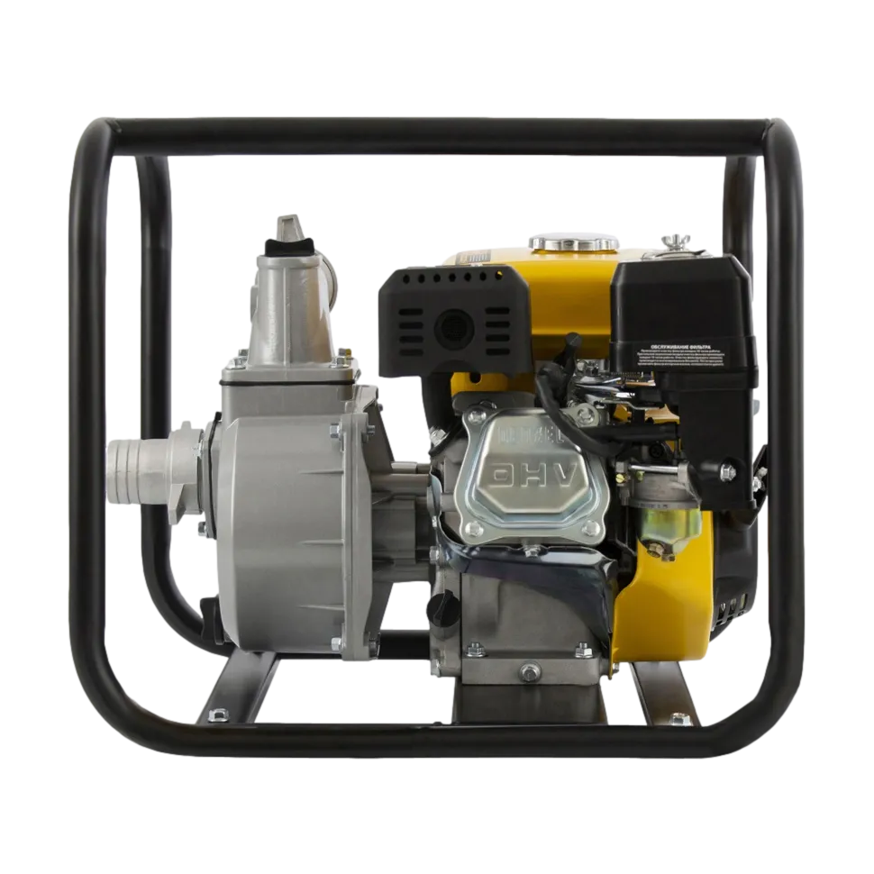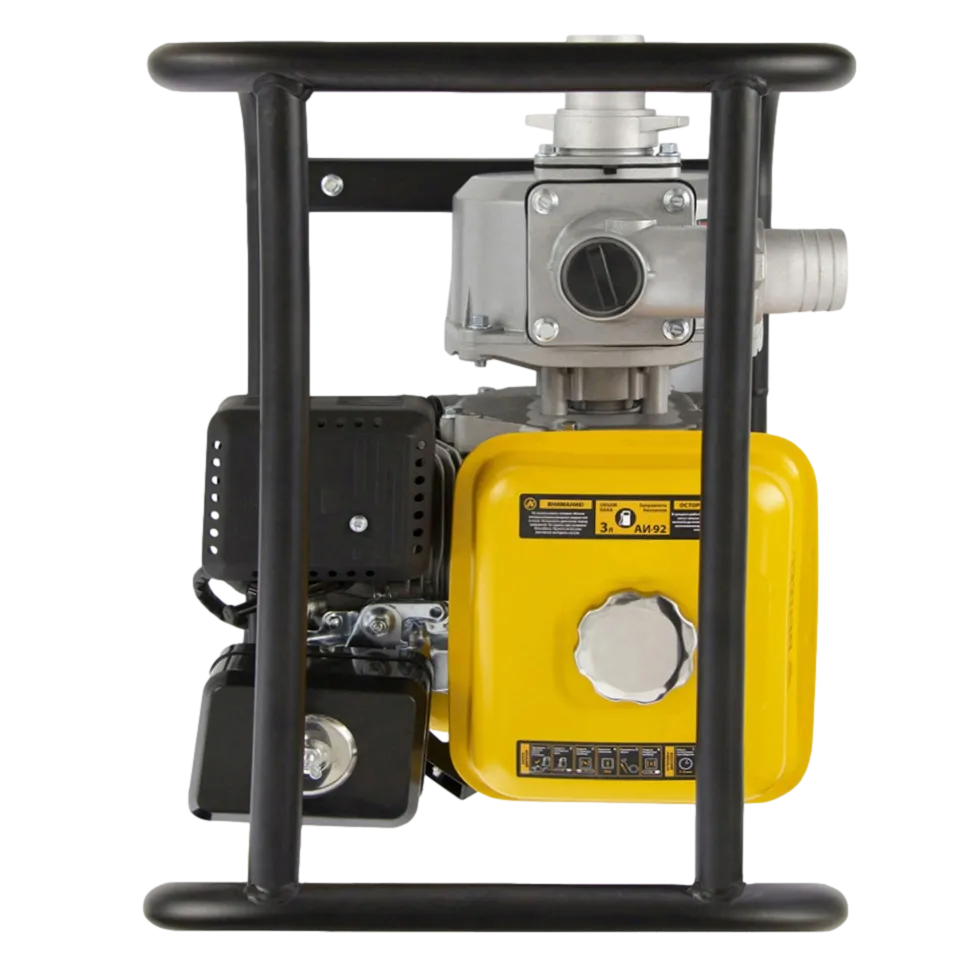 - Прочная конструкция — усиленная рама с широким основанием защищает мотопомпу от повреждений и обеспечивает устойчивость даже на неровной поверхности.