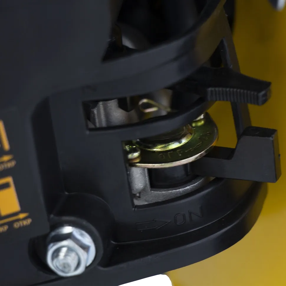 - Встроенная система защиты — при низком уровне масла двигатель автоматически отключается, что предотвращает его выход из строя.
