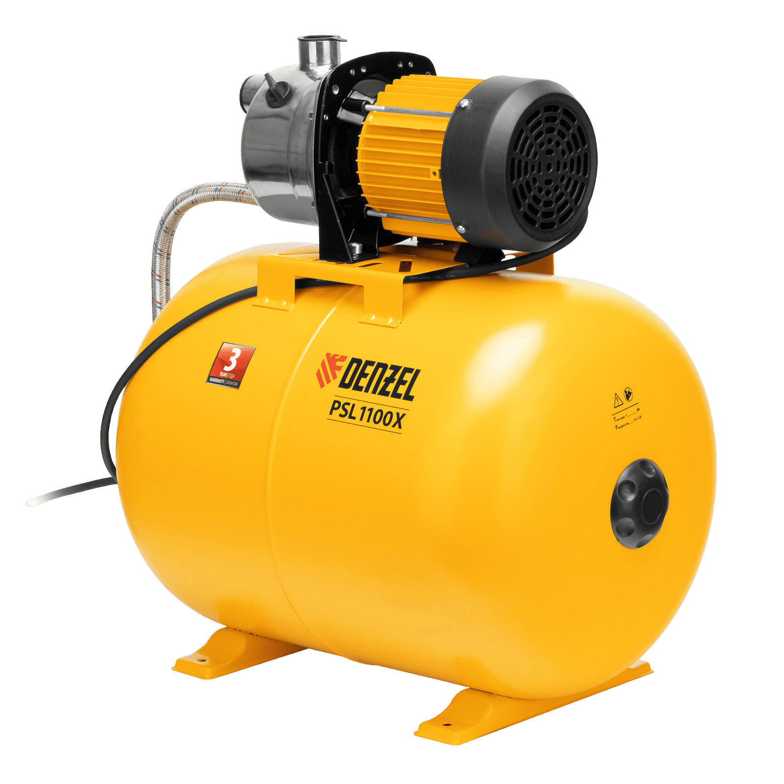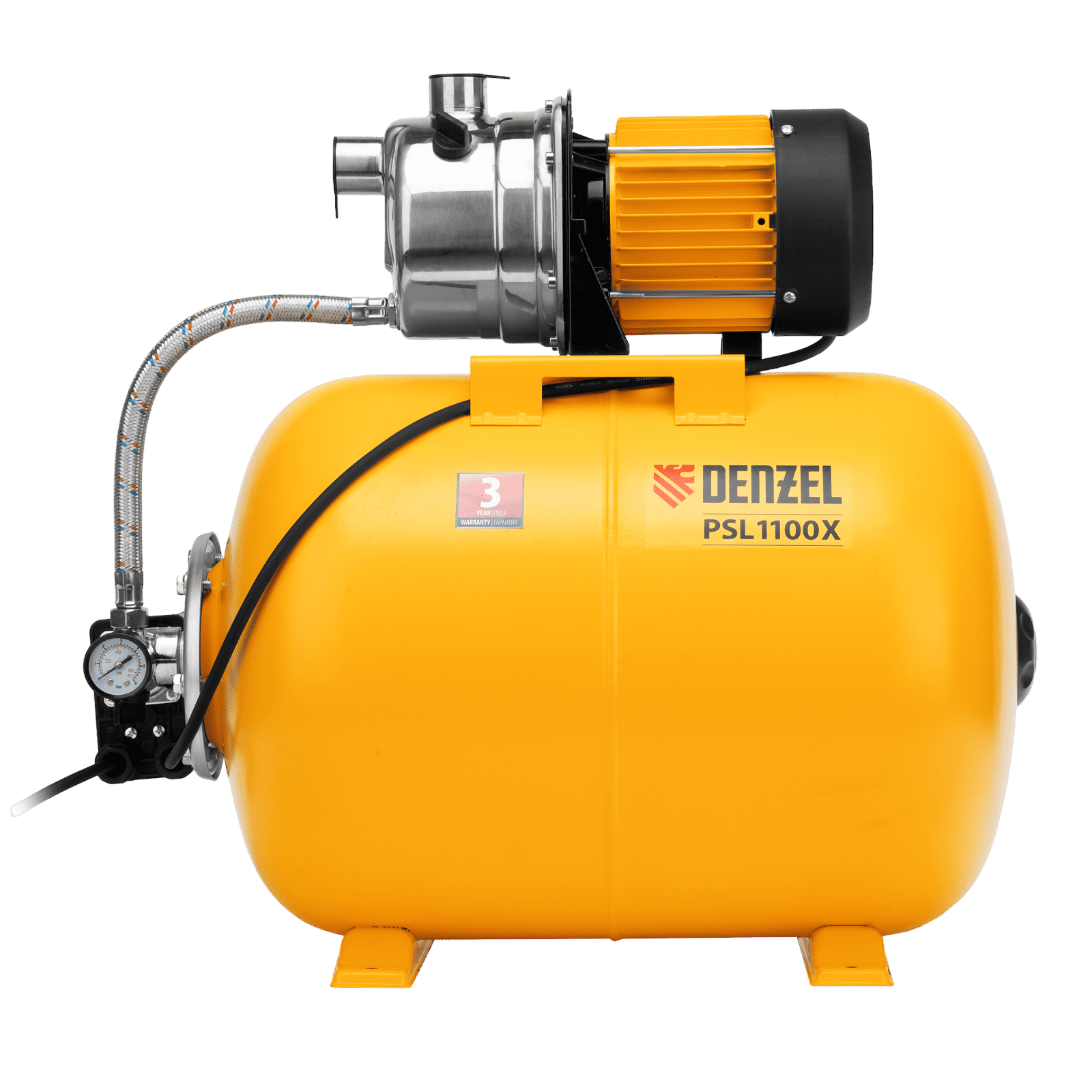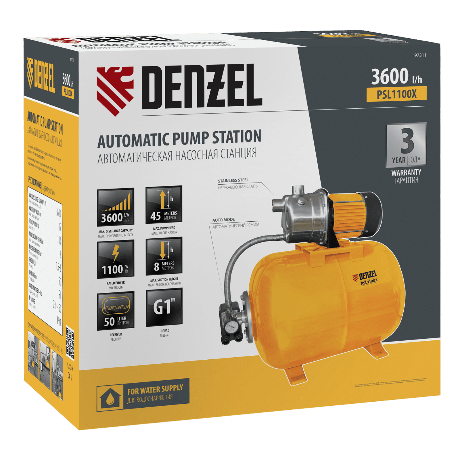 Насосная станция Denzel PSL1100X 97311 мощностью 1100 Вт, с ресивером объемом 50 л, с корпусом из «нержавейки», способна перекачивать 3600 л чистой воды в час, обеспечивая ее подъем на высоту до 45 м. Максимальная глубина всасывания составляет 8 м. Станция автоматически поддерживает нужное давление и используется для подачи воды в систему водоснабжения жилого дома или производственного объекта. Бак объемом 50 л позволяет снизить частоту включений насоса, тем самым увеличив срок службы насосной станции.