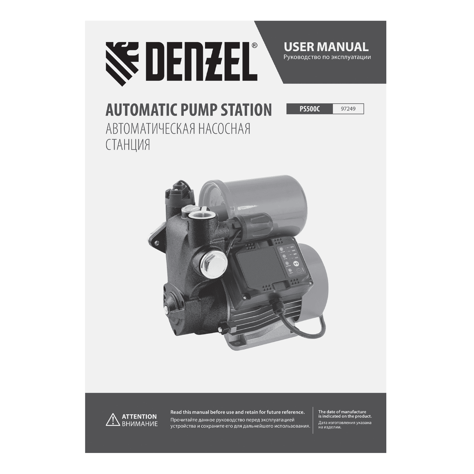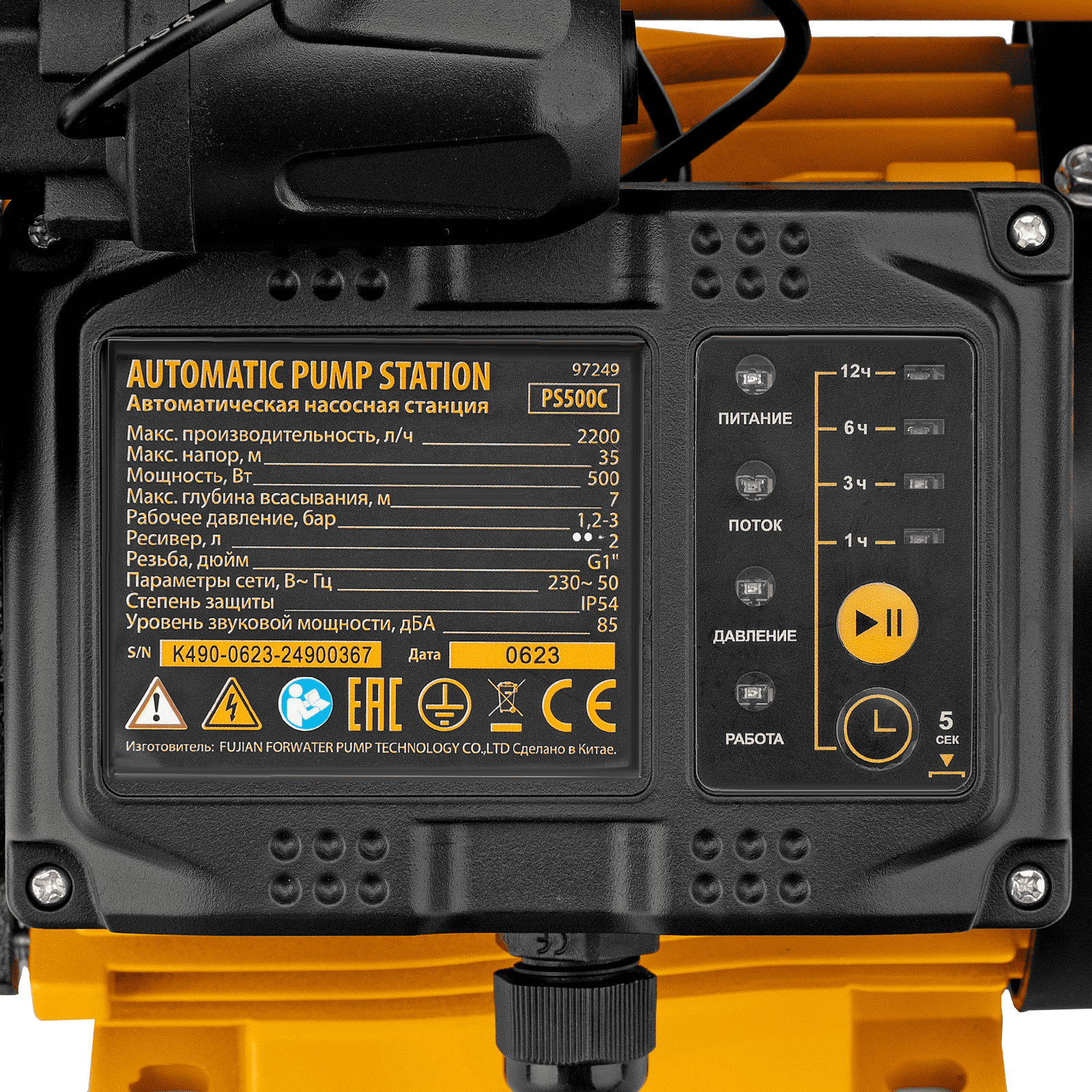 - Плавный пуск — станция запускается через 3 секунды после подключения питания, такое решение позволяет защитить двигатель и снизить нагрузку на электросеть.