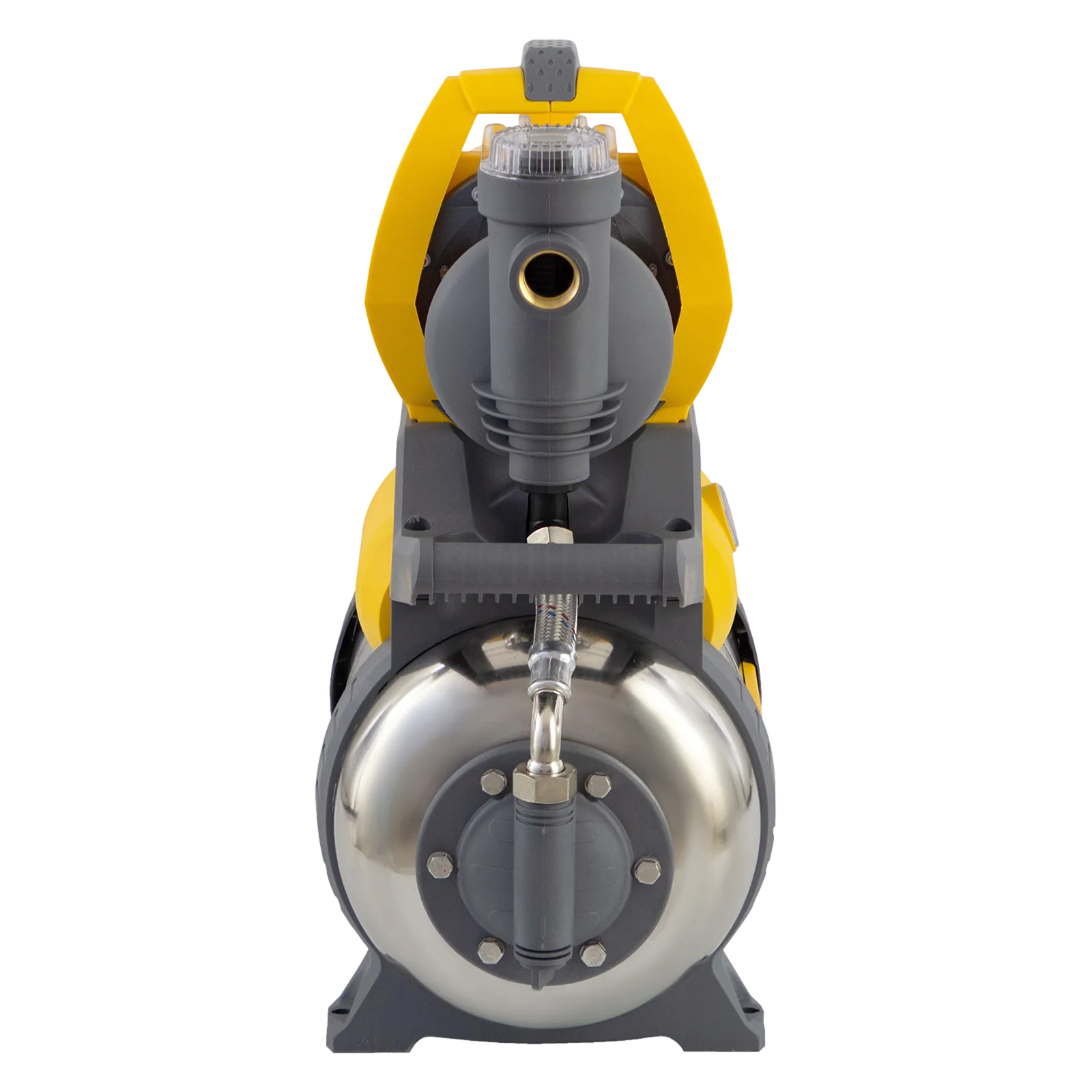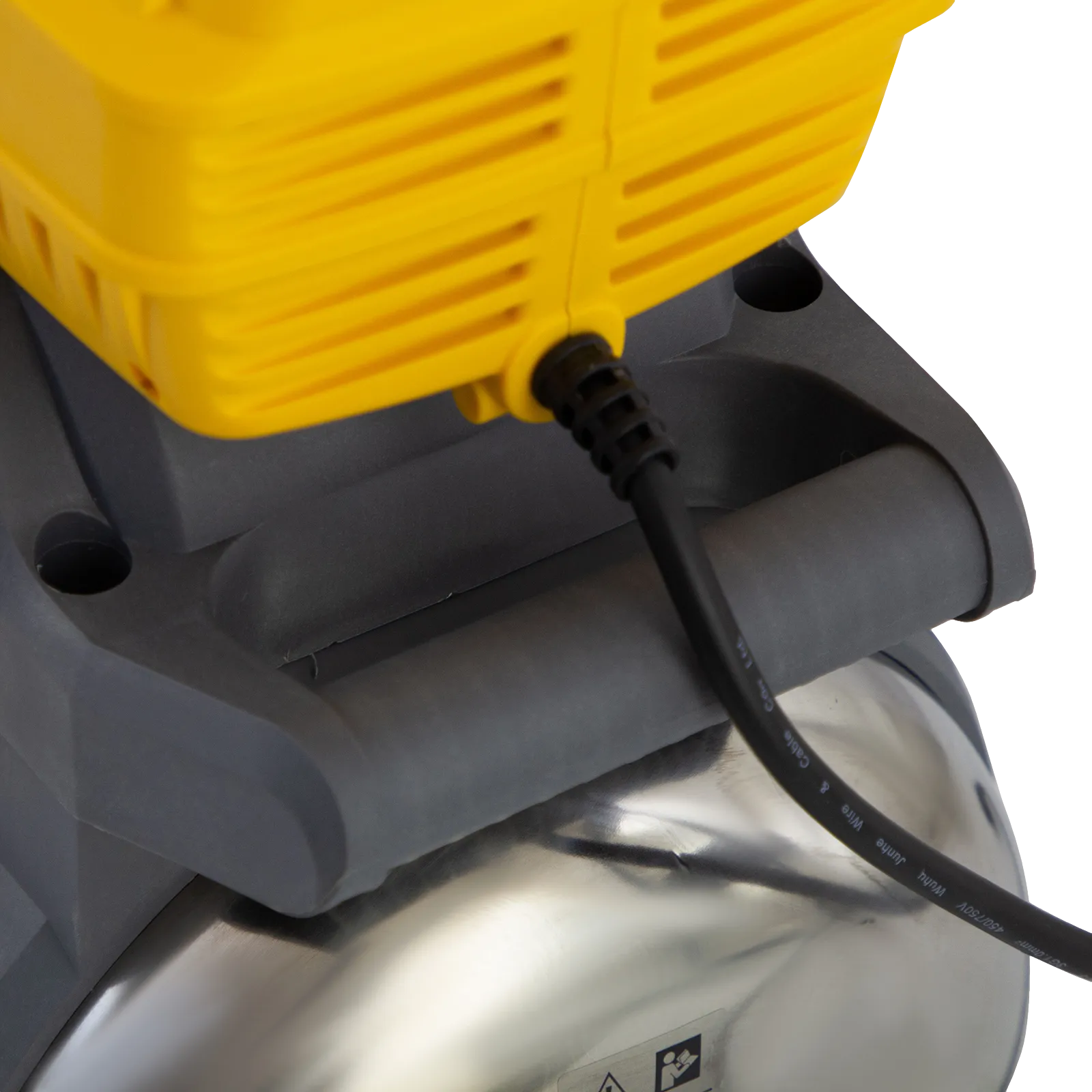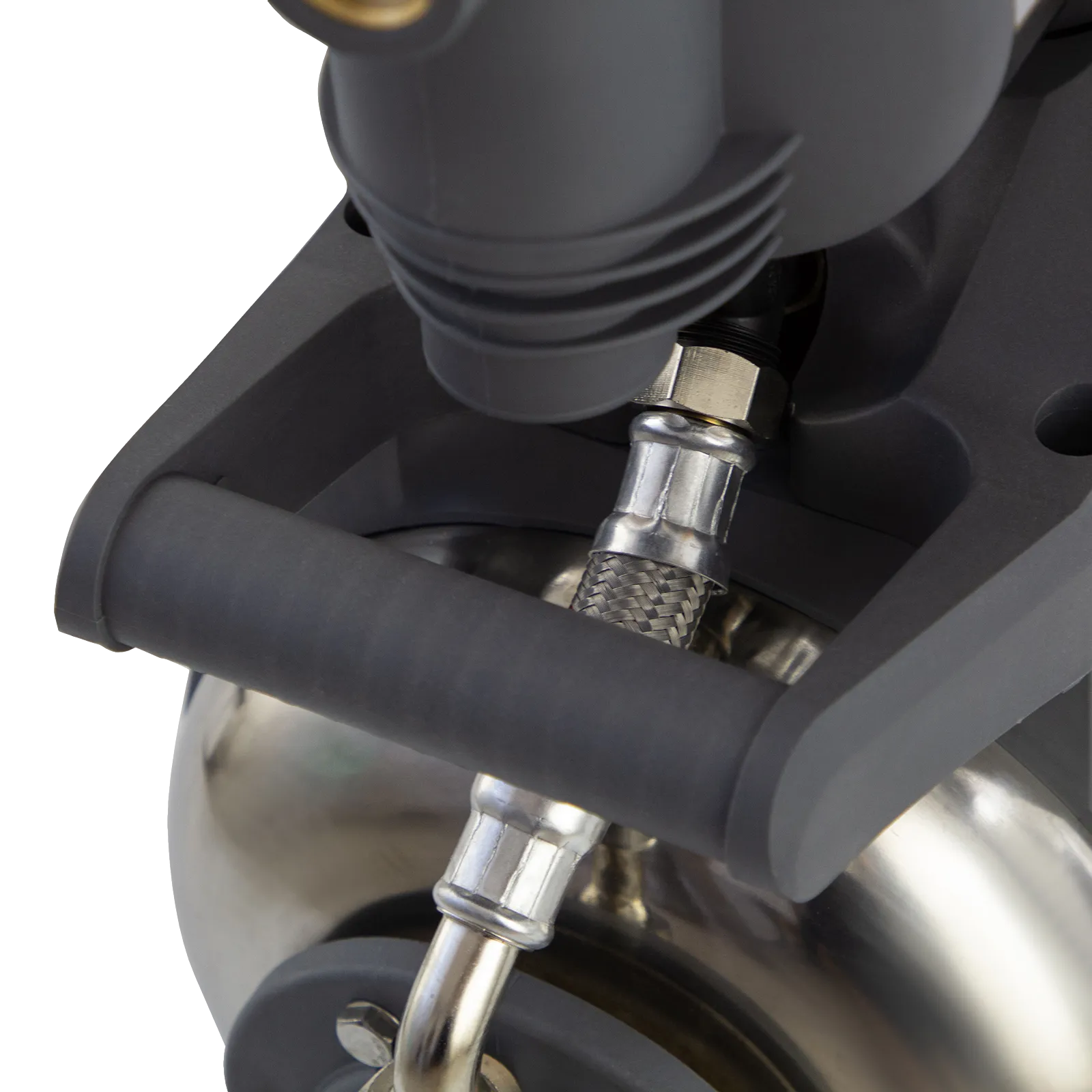 - Долгий срок службы — износостойкое торцевое уплотнение из карбида кремния, корпус насосной части, ресивер и вал из нержавеющей стали, рабочее колесо из прочного пластика рассчитаны на длительное использование.