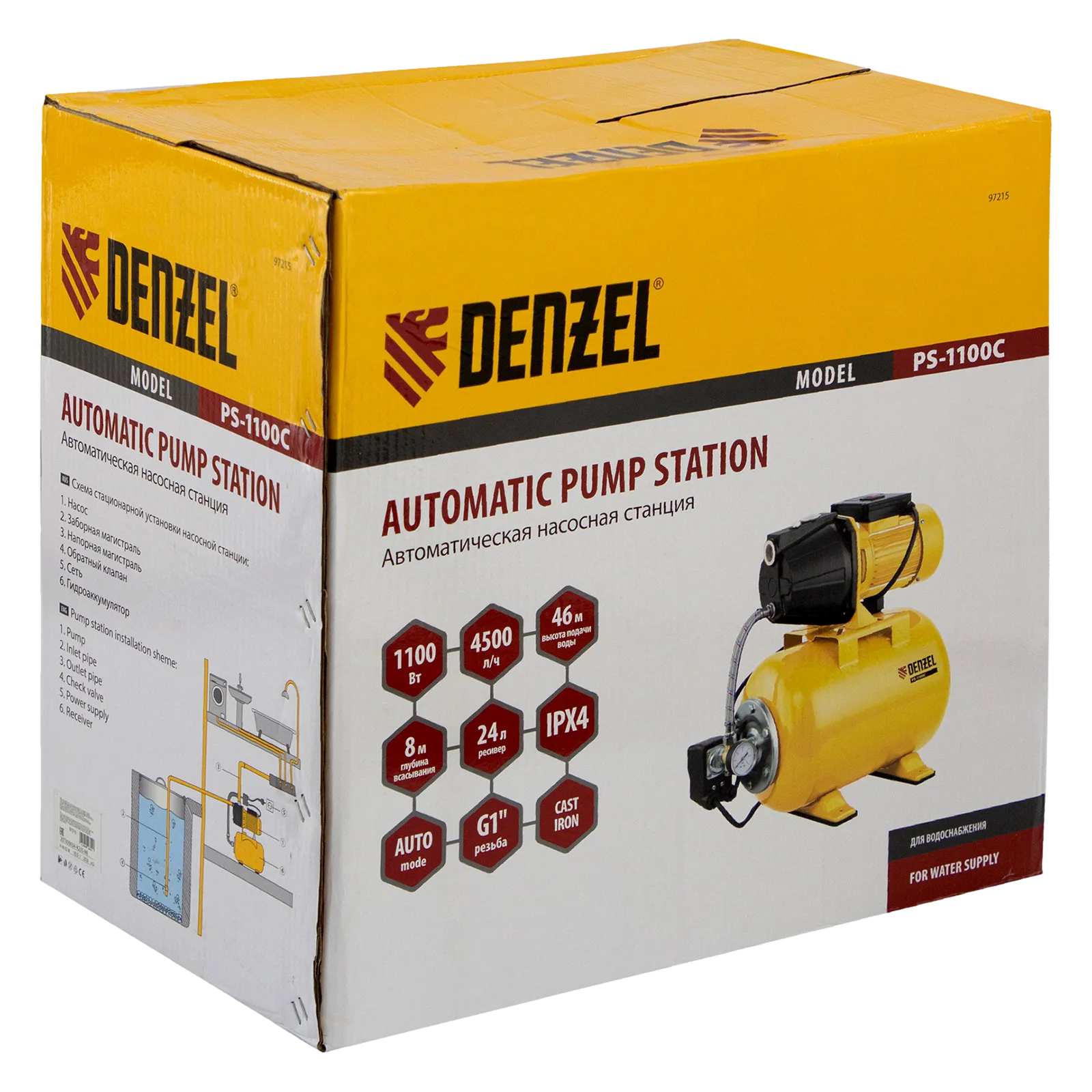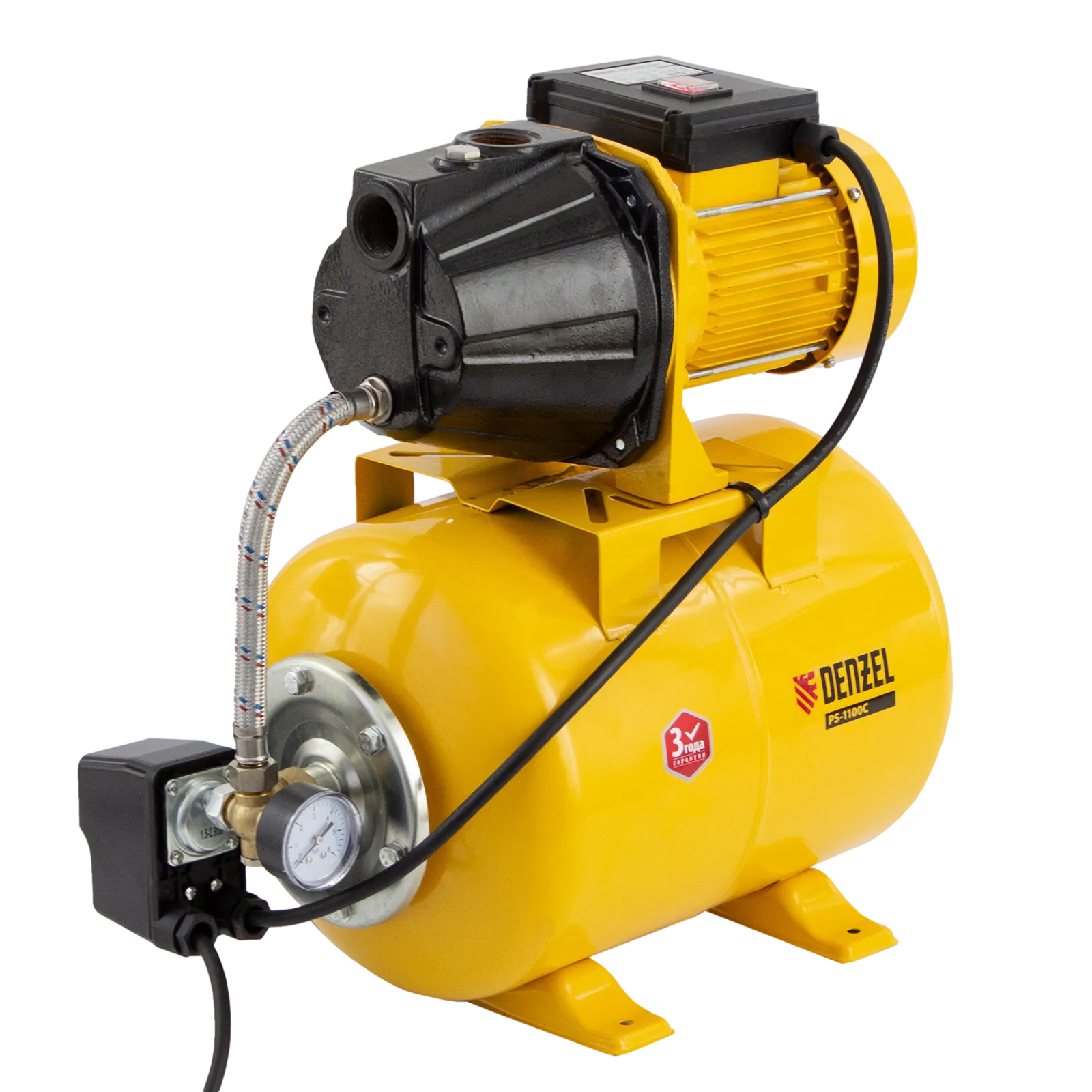 Насосная станция Denzel PS1100C 97215 мощностью 1100 Вт и производительностью 4500 л/ч, с корпусом из чугуна и ресивером на 24 л, способна перекачивать чистую воду с глубины до 8 м и обеспечивает напор до 46 м. Подходит для подачи воды из колодцев и резервуаров в несколько точек разбора одновременно — на кухню, в баню, душ и систему полива. Вместительный ресивер накапливает воду, снижая количество включений и нагрузку на двигатель, а также обеспечивая запас воды на случай отключения электричества. Станция работает в автоматическом режиме и не требует постоянного контроля пользователя.