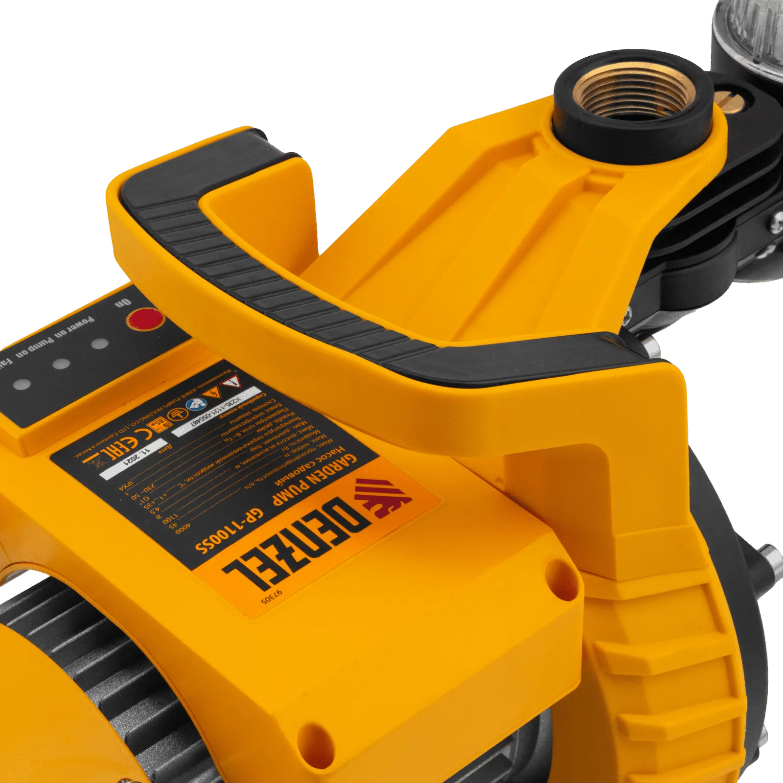 - Удобный контроль основных параметров — на блоке управления имеются световые индикаторы подключения питания, работы насоса и отсутствия воды в магистрали.