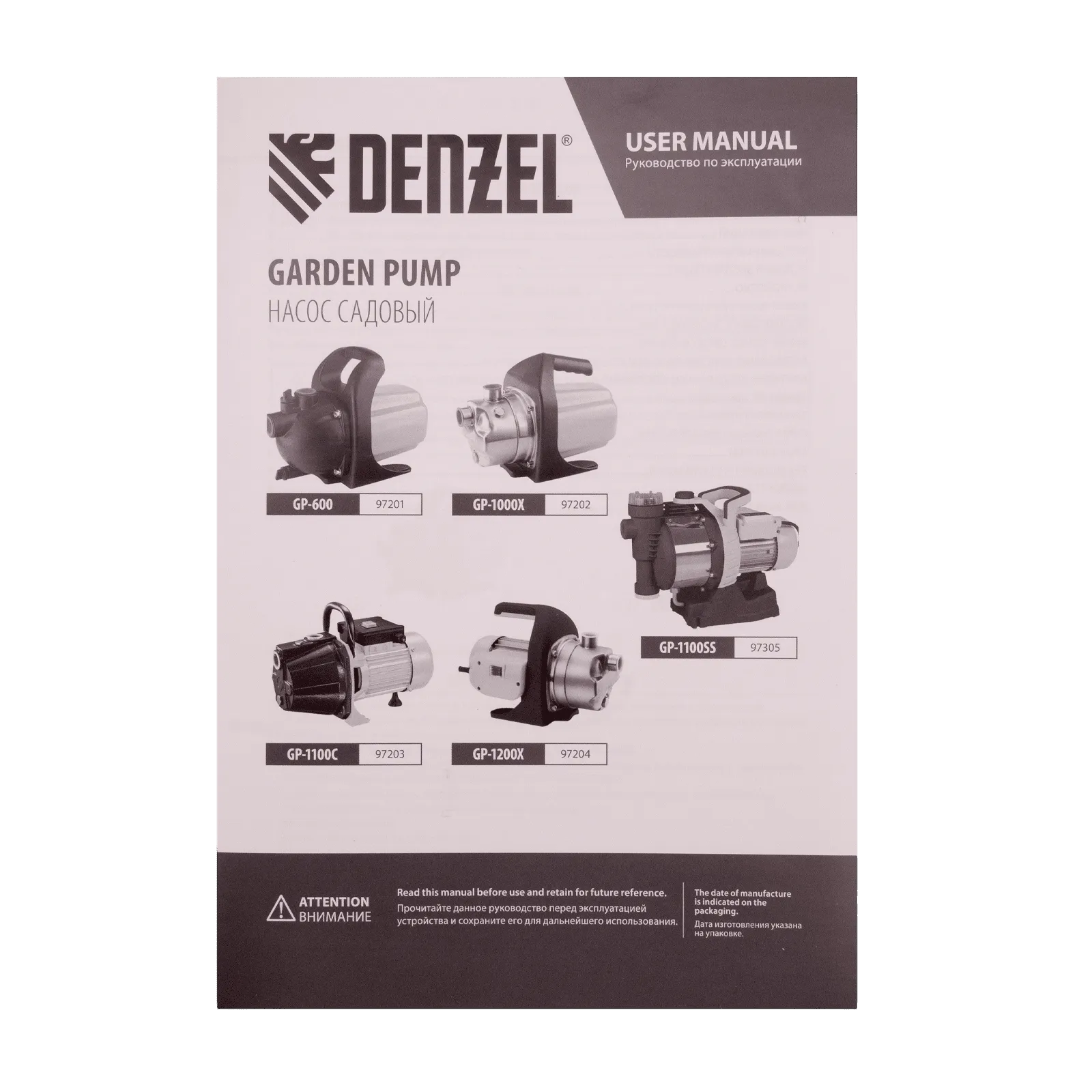 - Защита от сухого хода — насос отключается после 30 секунд работы без воды.