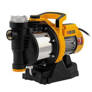 Садовый поверхностный насос Denzel GP1100SS 97305 мощностью 1100 Вт и производительностью до 4000 л/ч, с корпусом из пластика, осуществляет забор чистой воды с глубины до 8 м из колодцев, емкостей и водоемов, поднимая ее на высоту до 45 м. Используется для организации системы полива и водоснабжения на даче. Его можно подключать к водопроводной системе для обеспечения стабильного напора. Производительности насоса хватит для снабжения нескольких водоразборных точек одновременно.