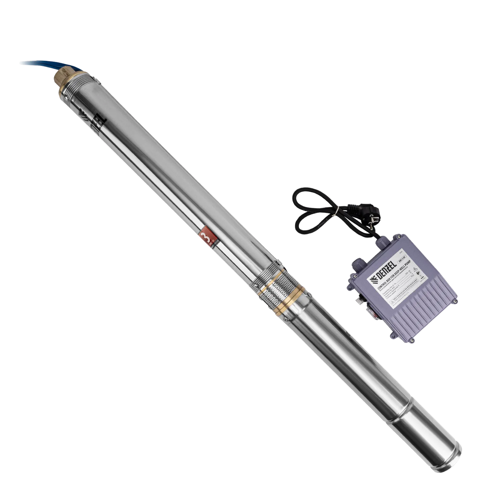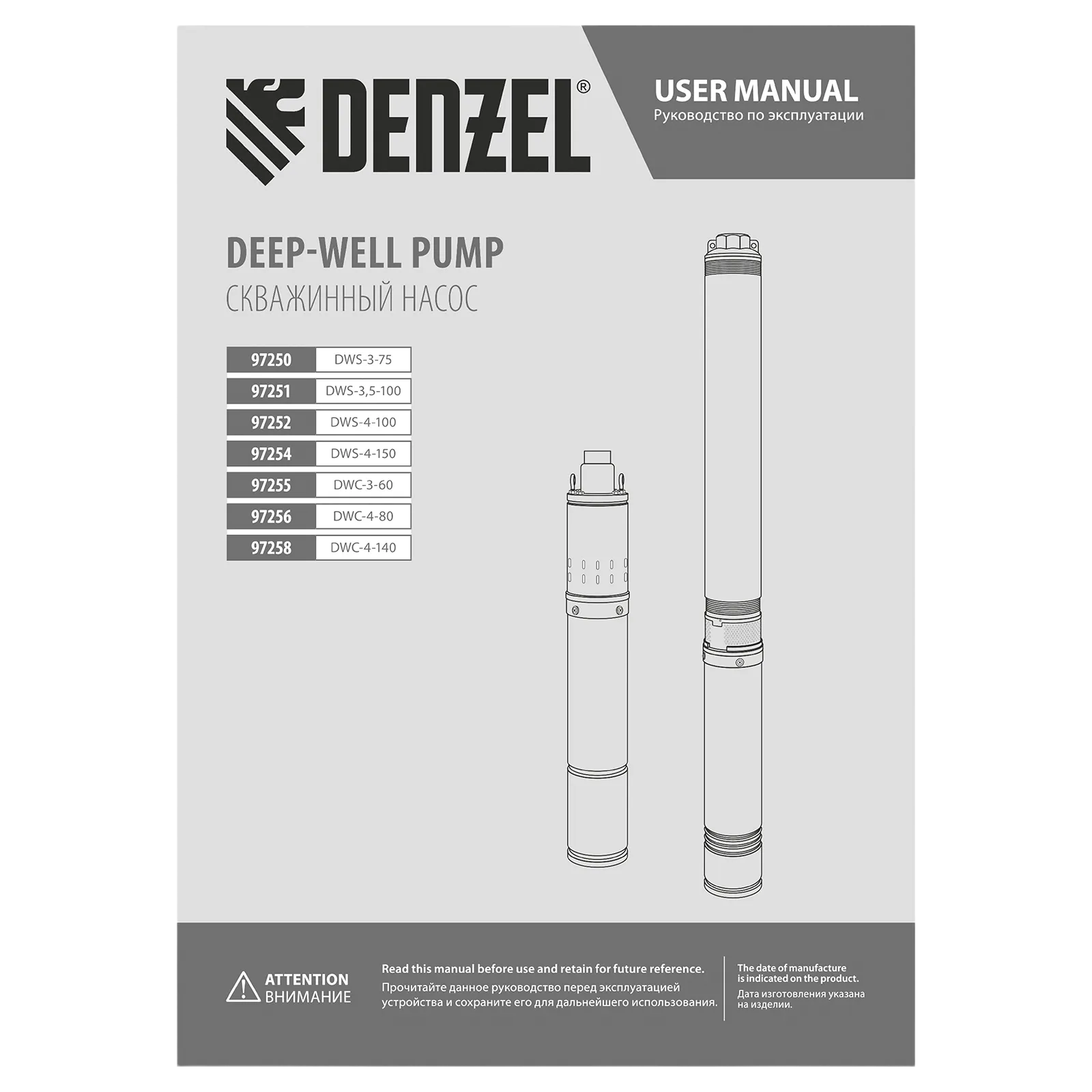 Насос скважинный центробежный Denzel DWC-3-60 97255 диаметром 3" и мощностью 800 Вт легко справляется с перекачиванием чистой воды объемом до 3300 л/ч с глубины до 80 м, поднимая ее на высоту до 60 м. С его помощью можно организовать водоснабжение частного дома, полив или орошение грунта, а также решить другие бытовые задачи.