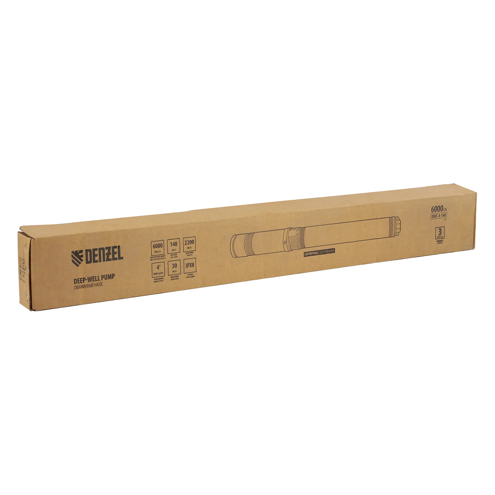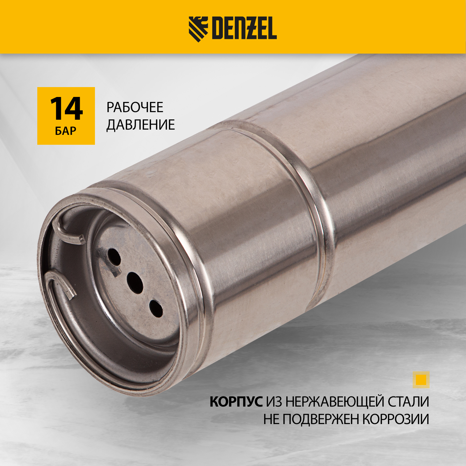 Скважинный насос Denzel DWC-4-140 97258 производительностью 6000 л/ч, диаметром 4″ и мощностью 2200 Вт обеспечивает напор до 140 м. Предназначен для подачи чистой воды из скважин, колодцев, систем водоснабжения, различных накопителей и пресных водоемов с глубины до 27 м (с наращиванием кабеля — до 80 м). Насосная часть из 19 центробежных импеллеров обеспечивает повышенную производительность, что позволяет организовать не только полив приусадебных участков, но и бытовое водоснабжение.