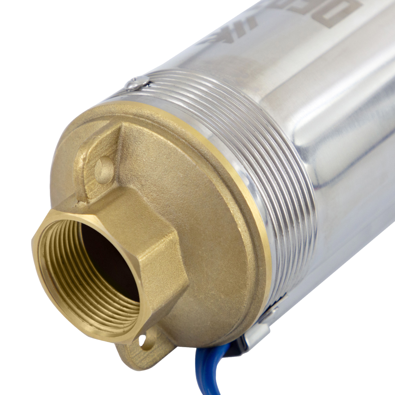 - Быстрое начало работы — напорная магистраль легко подключается к выходному отверстию, образуя герметичное соединение, насос не нужно заполнять водой, достаточно погрузить его в скважину и включить.