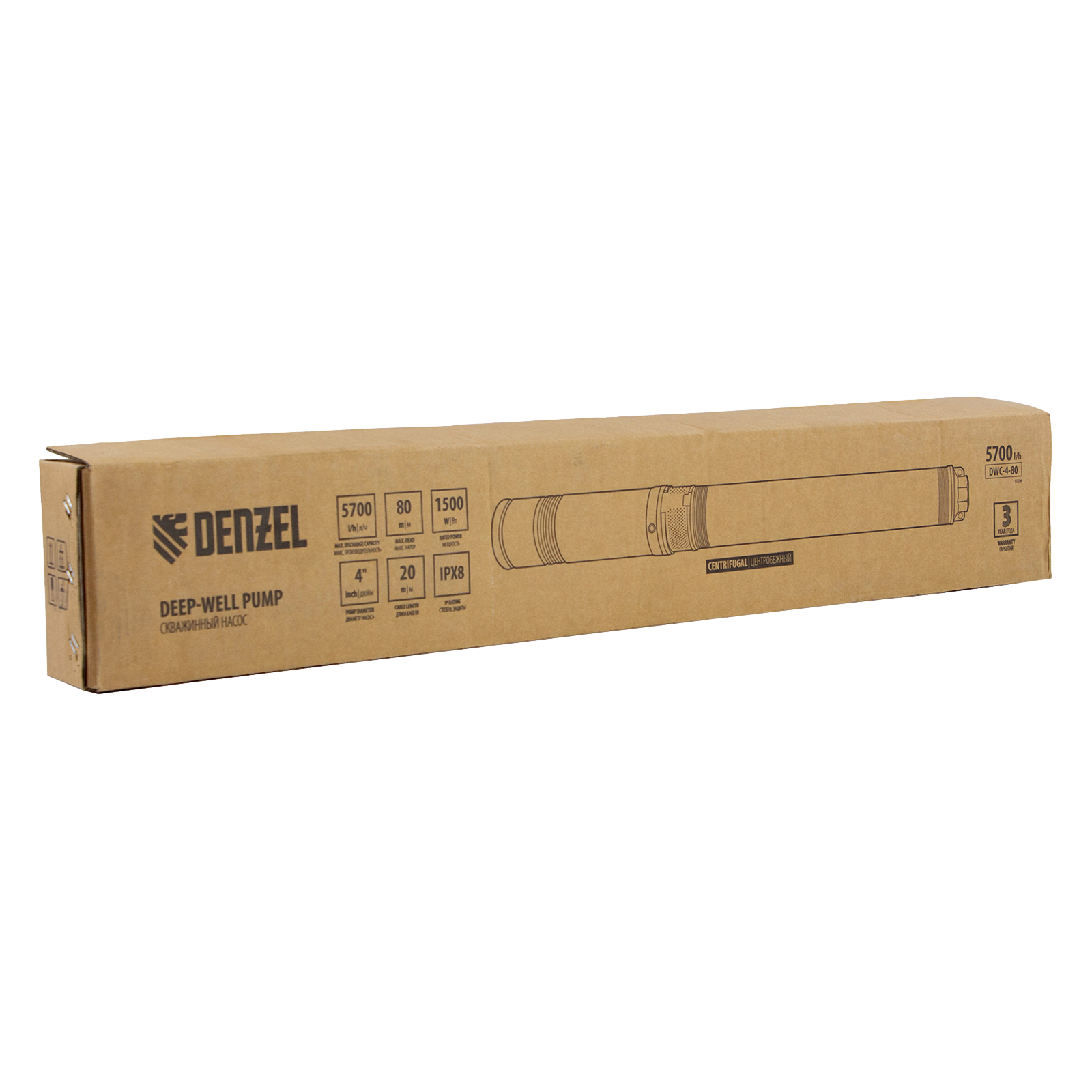 Скважинный насос Denzel DWC-4-80 97256 производительностью 5700 л/ч, диаметром 4″ и мощностью 1500 Вт обеспечивает напор до 80 м. Предназначен для подачи чистой воды из скважин, колодцев, систем водоснабжения, различных накопителей и пресных водоемов с глубины до 17 м (с наращиванием кабеля — до 80 м). Насосная часть из 11 центробежных импеллеров обеспечивает повышенную производительность, что позволяет организовать не только полив приусадебных участков, но и бытовое водоснабжение.