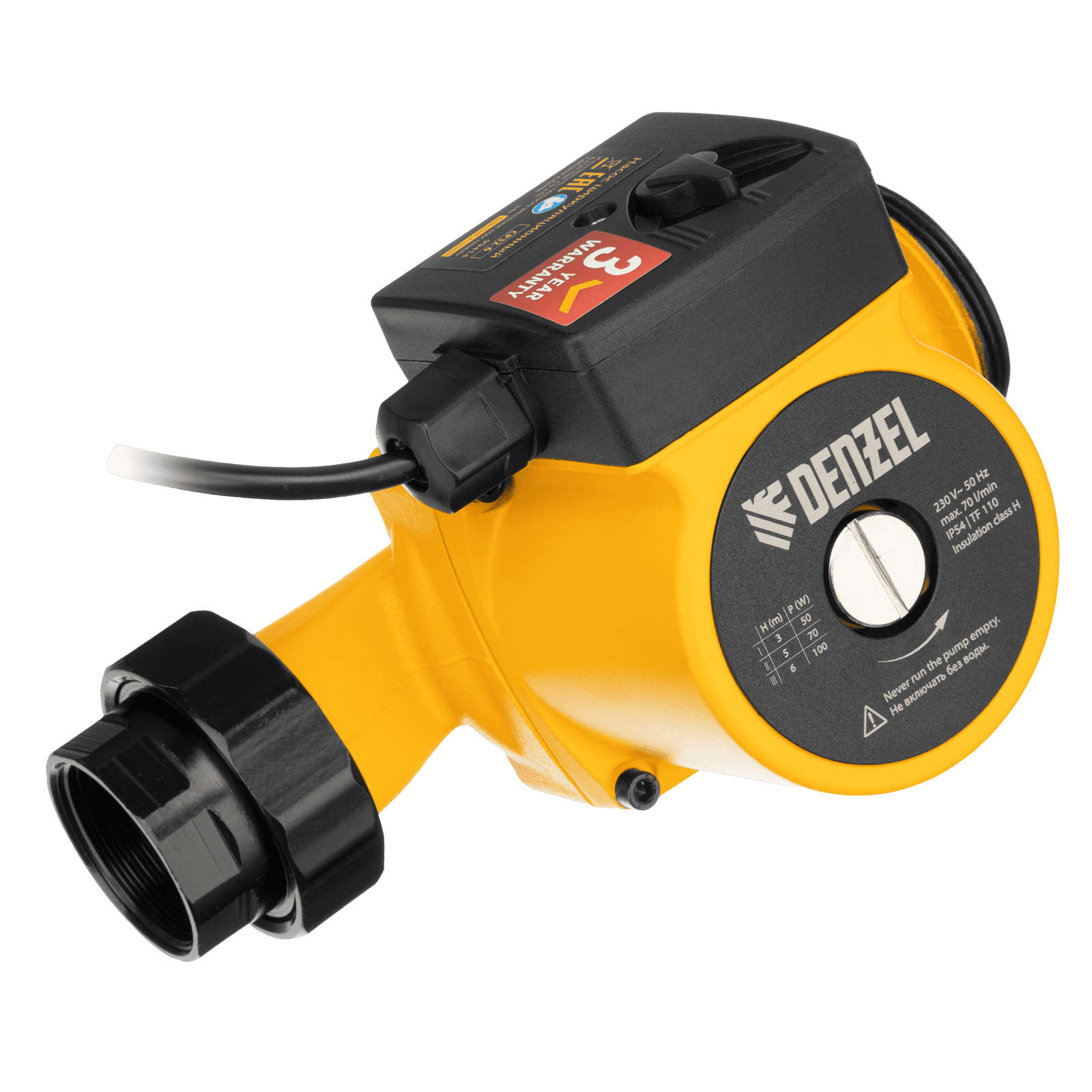 Циркуляционный насос Denzel CP32-6 99414 с кабелем длиной 1 м имеет монтажную длину 180 мм и обеспечивает напор до 6 м, максимальный объем перекачиваемой жидкости составляет 70 л/мин. Устройство обеспечивает непрерывное движение горячей воды температурой до 110 °C по трубопроводу. Насос позволит организовать эффективную систему теплоснабжения загородного дома.