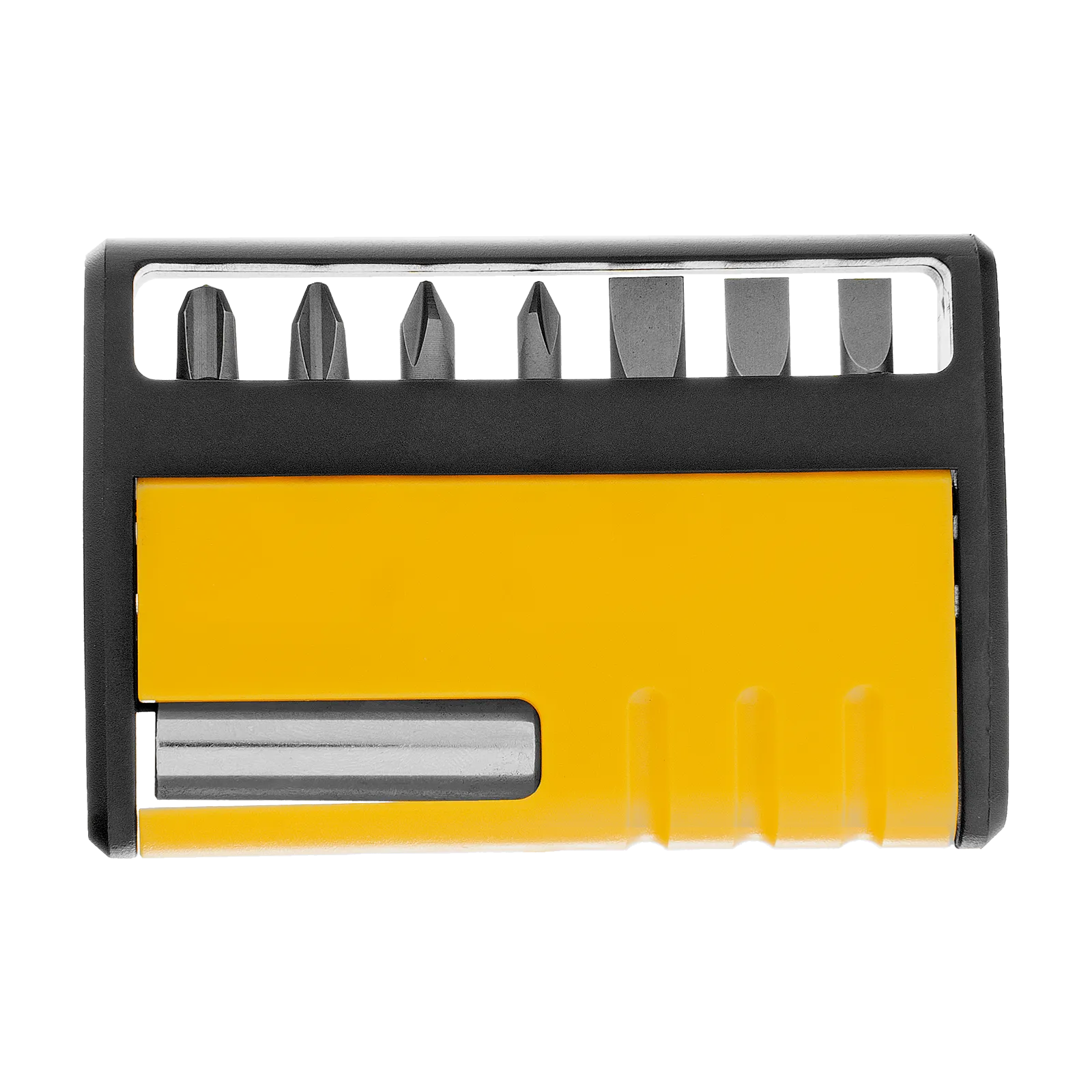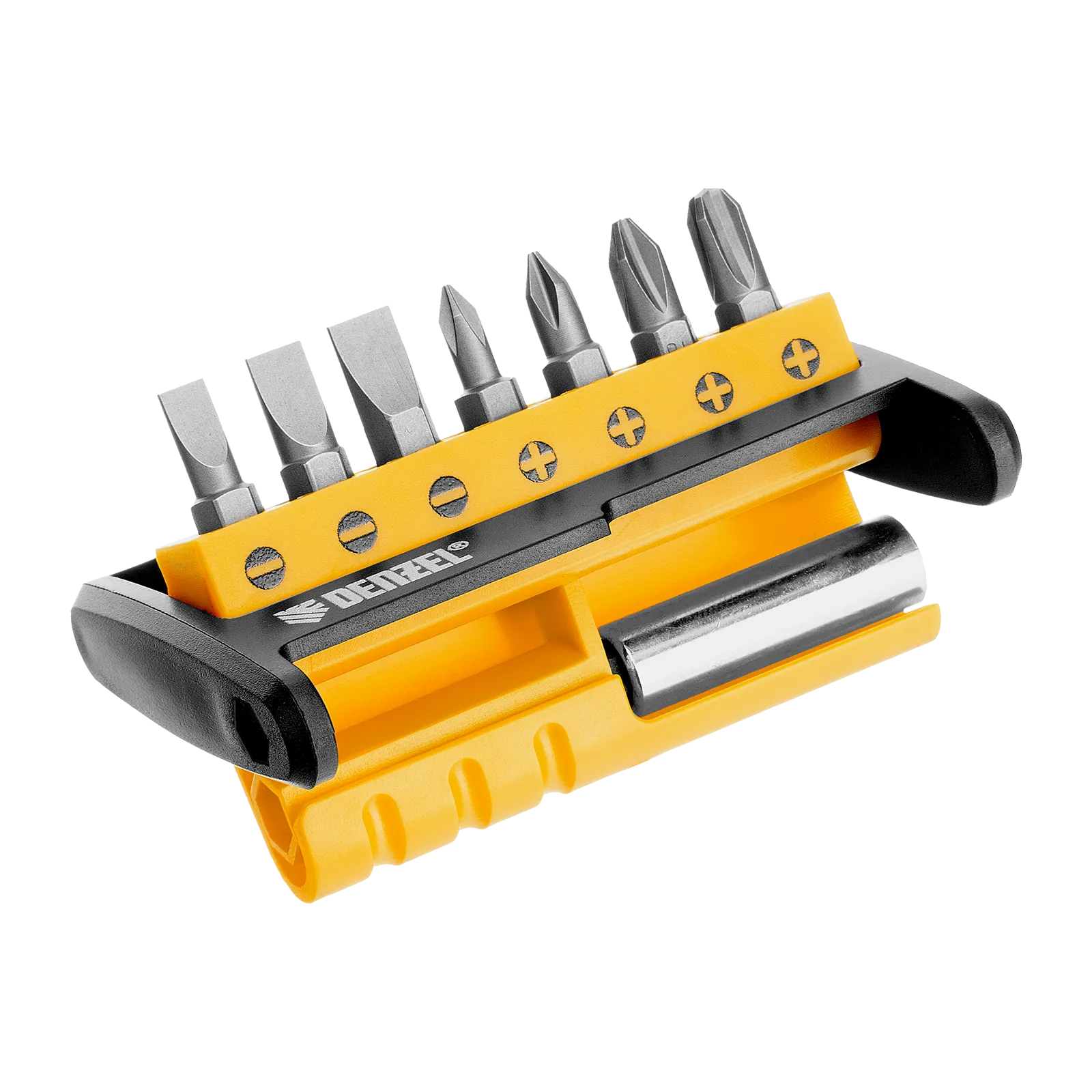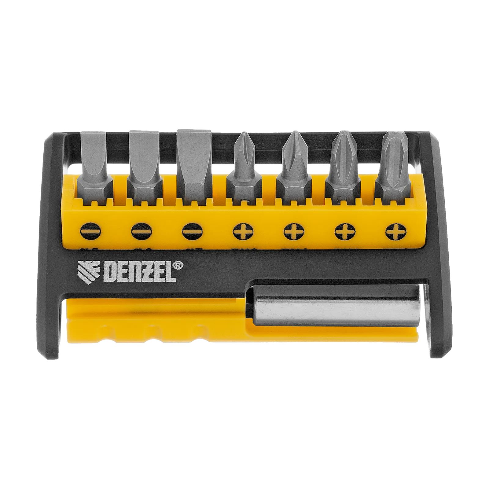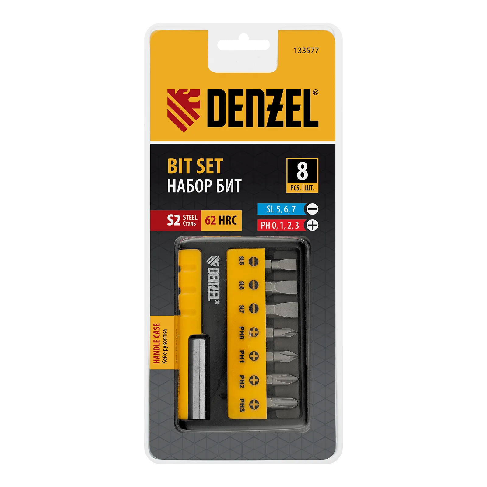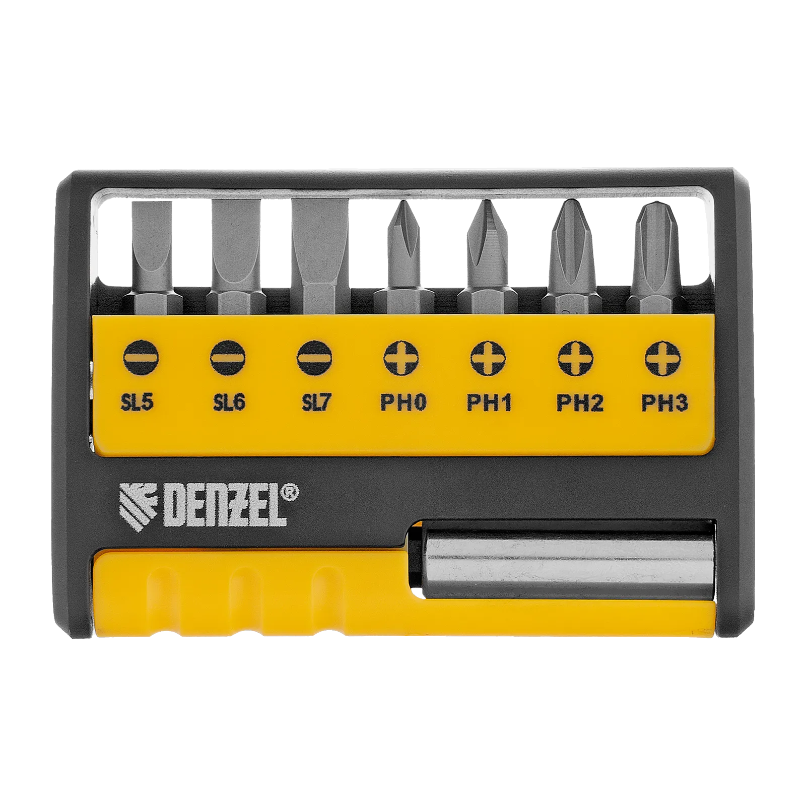 Набор бит Denzel 133577 состоит из 8 предметов: 7 бит длиной 25 мм и магнитного держателя. Используется для работы с крепежом со шлицами PH 0, 1, 2, 3 и SL 5, 6 и 7. Оснастка с идеальной геометрией выдерживает длительное использование без потери рабочих свойств.