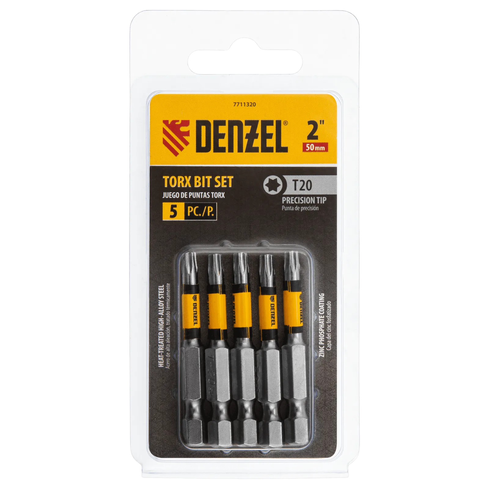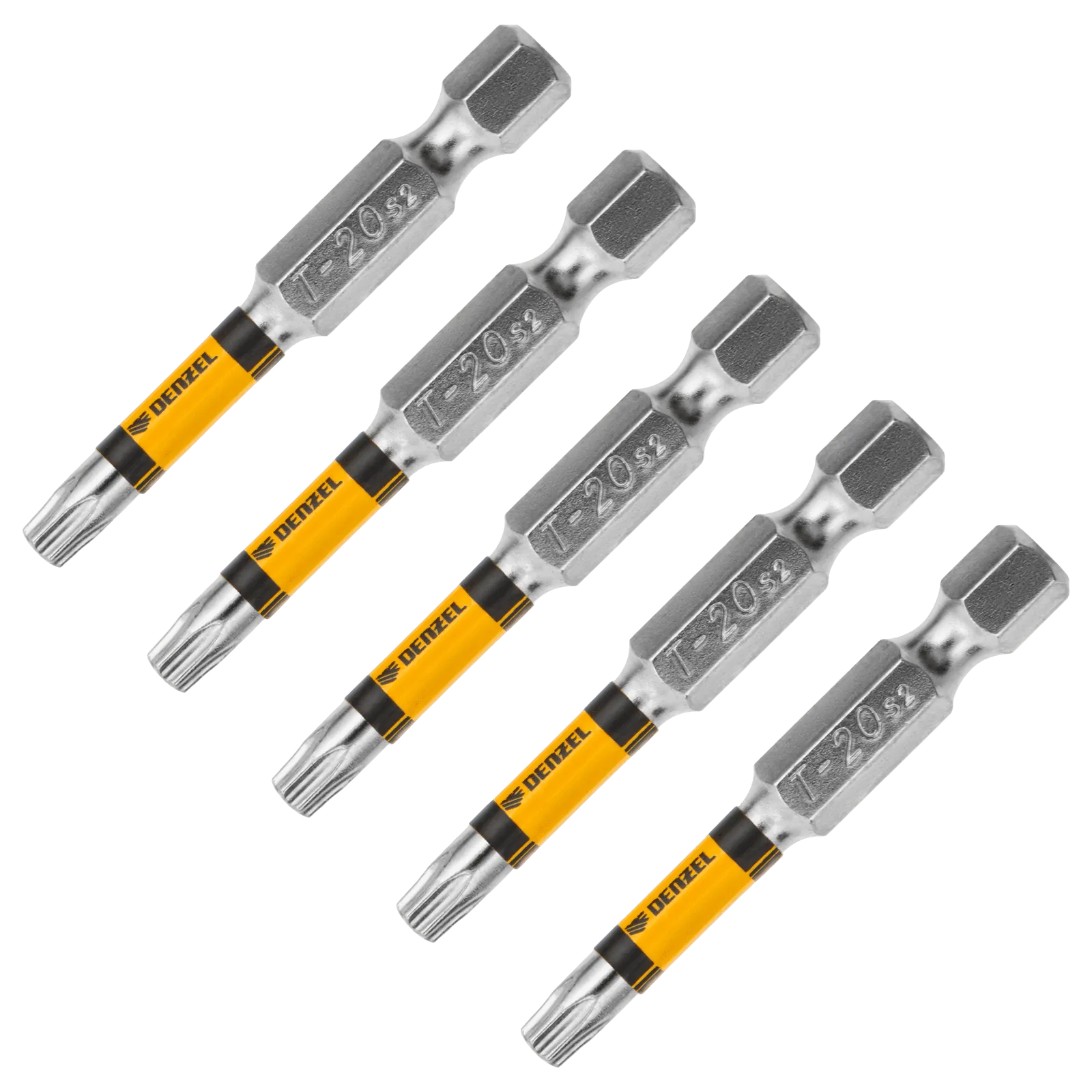 Набор бит Denzel 7711320 типоразмера T20 x 50, 5 шт. в упаковке, подходит для использования с шуруповертами, электрическими отвертками и отвертками-держателями. Используется для сборки и ремонта бытовой техники и электроприборов. Будет полезен в мастерской, пригодится также дома, в гараже и на даче.