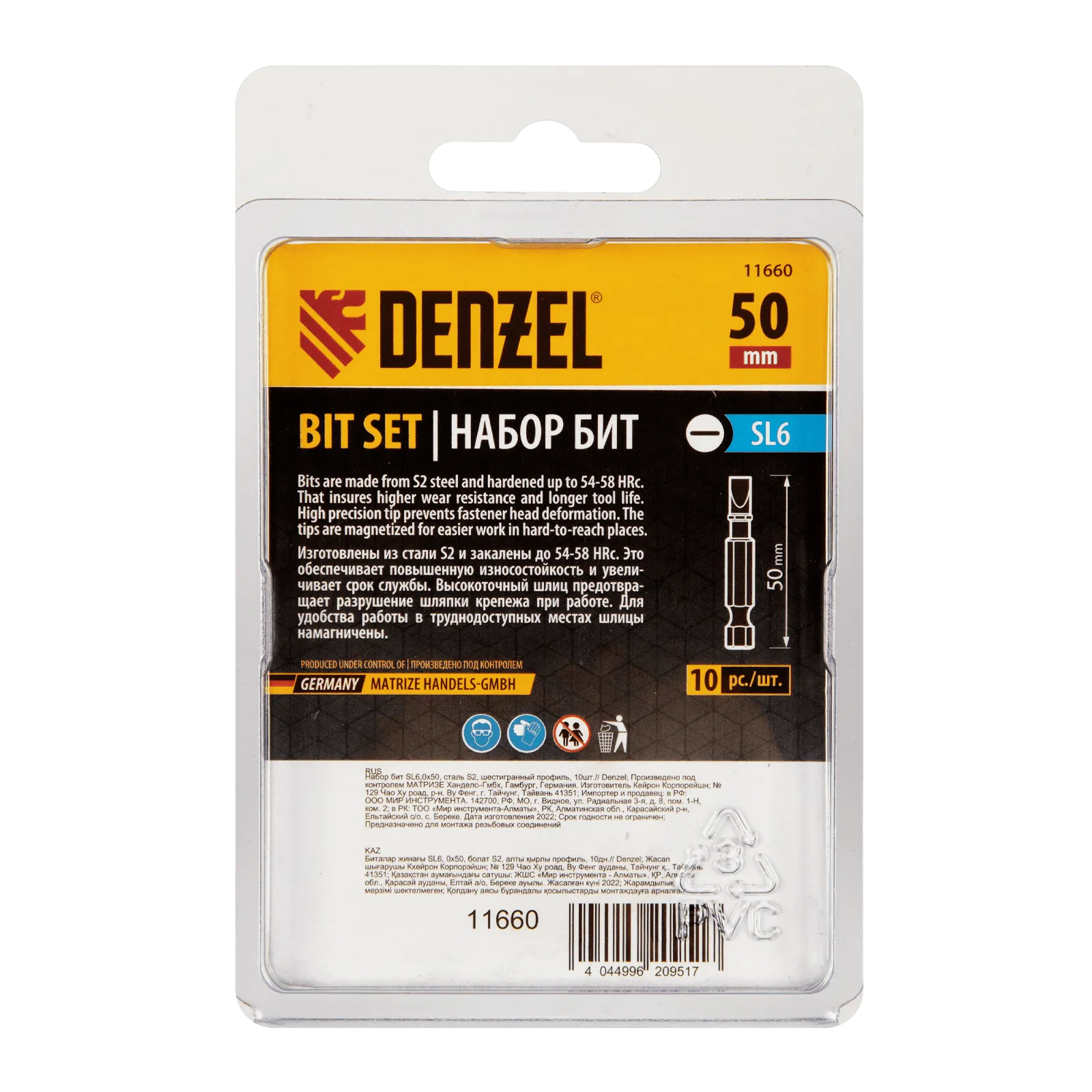 - Защита от подделок — цветное кольцо с логотипом ТМ Denzel на каждой бите подтверждает оригинальность товара.