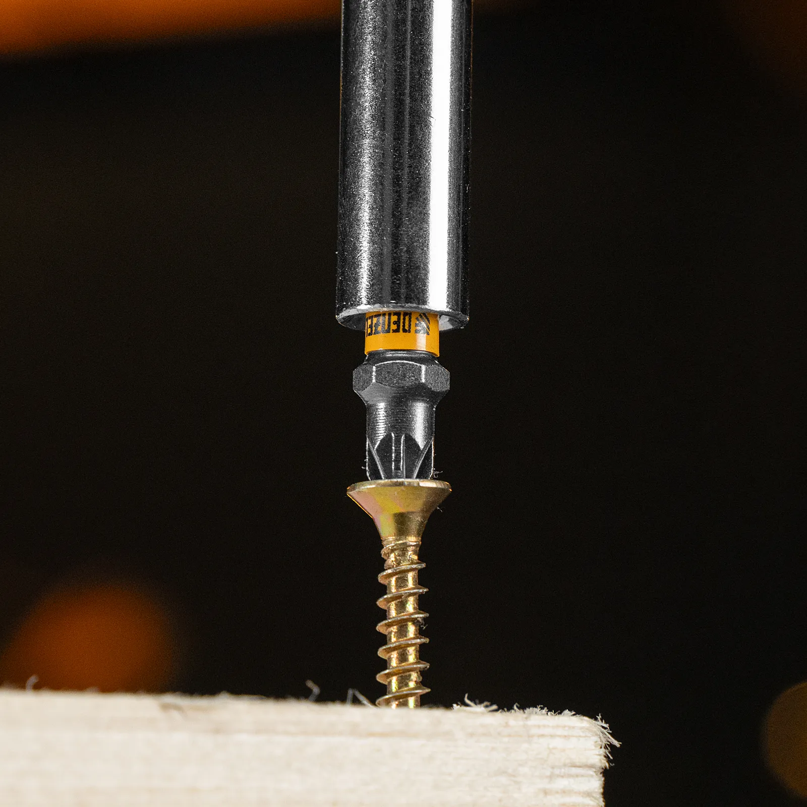 - Удобная эксплуатация — намагниченный шлиц облегчает работу и позволяет направлять шуруповерт с насаженным крепежом одной рукой, а другой придерживать закрепляемую деталь.