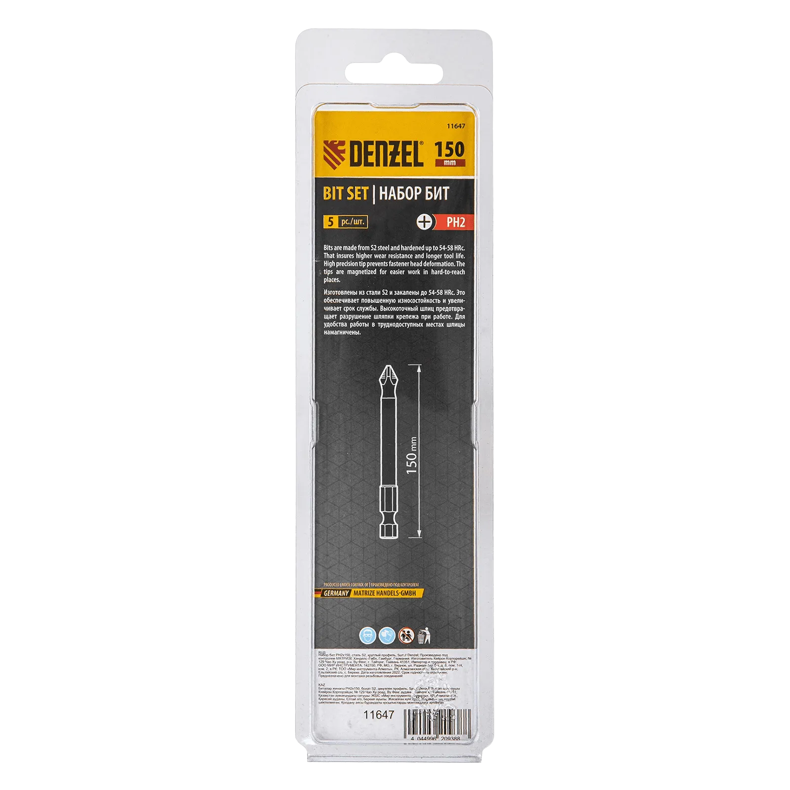Набор односторонних бит PH2 x 150 мм Denzel 11647 — это 5 сменных насадок из стали S2 с крестообразными шлицами и шестигранными хвостовиками 1/4". Профессиональная оснастка рассчитана на работу с шуруповертом, обеспечивает быстрый монтаж и демонтаж резьбовых соединений с углублением PH2.