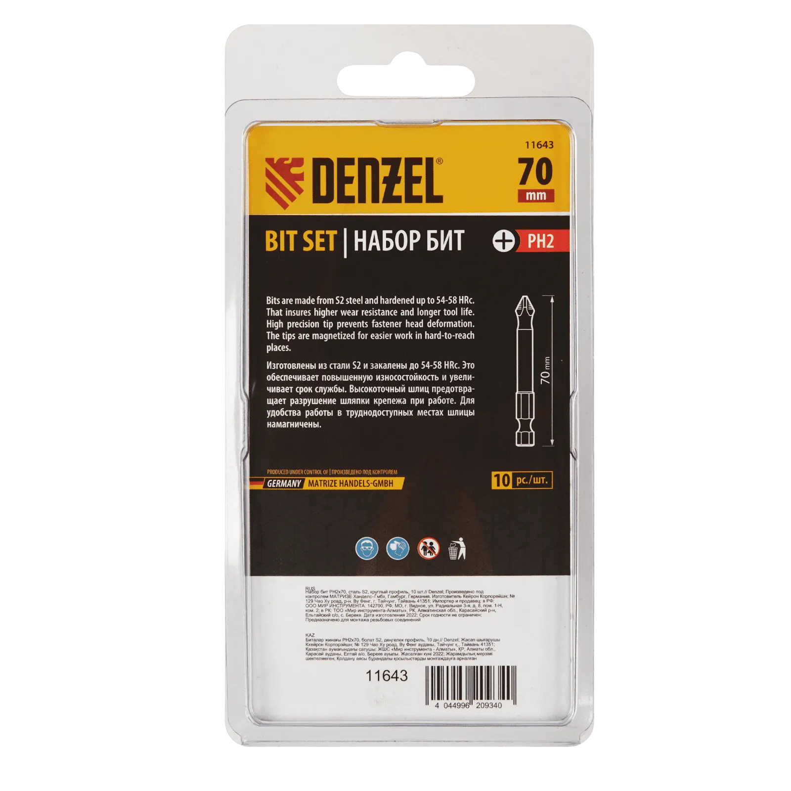 Набор односторонних бит с круглым профилем PH2 x 70 мм Denzel 11643 — это 10 сменных насадок из стали S2 с крестообразными шлицами и шестигранными хвостовиками 1/4". Профессиональная оснастка рассчитана на работу с шуруповертом, обеспечивает быстрый монтаж и демонтаж резьбовых соединений с углублением PH2.