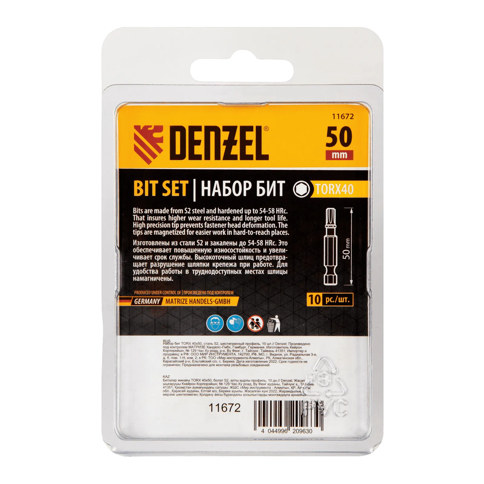 Набор бит TORX 40 х 50 мм Denzel 11672 включает в себя 10 насадок с хвостовиками 1/4 дюйма из стали S2 для работы с шуруповертами. Шлиц в форме звезды служит для быстрого монтажа и демонтажа винтов при сборке бытовой техники и электроприборов. Набор универсален и подходит как для бытового, так и для профессионального применения. Благодаря конструктивной особенности лучи «звезды» надежно сцепляются с крепежом, нагрузка равномерно распределяется на все грани, это снижает риск соскальзывания биты и обеспечивает высокую точность работ.