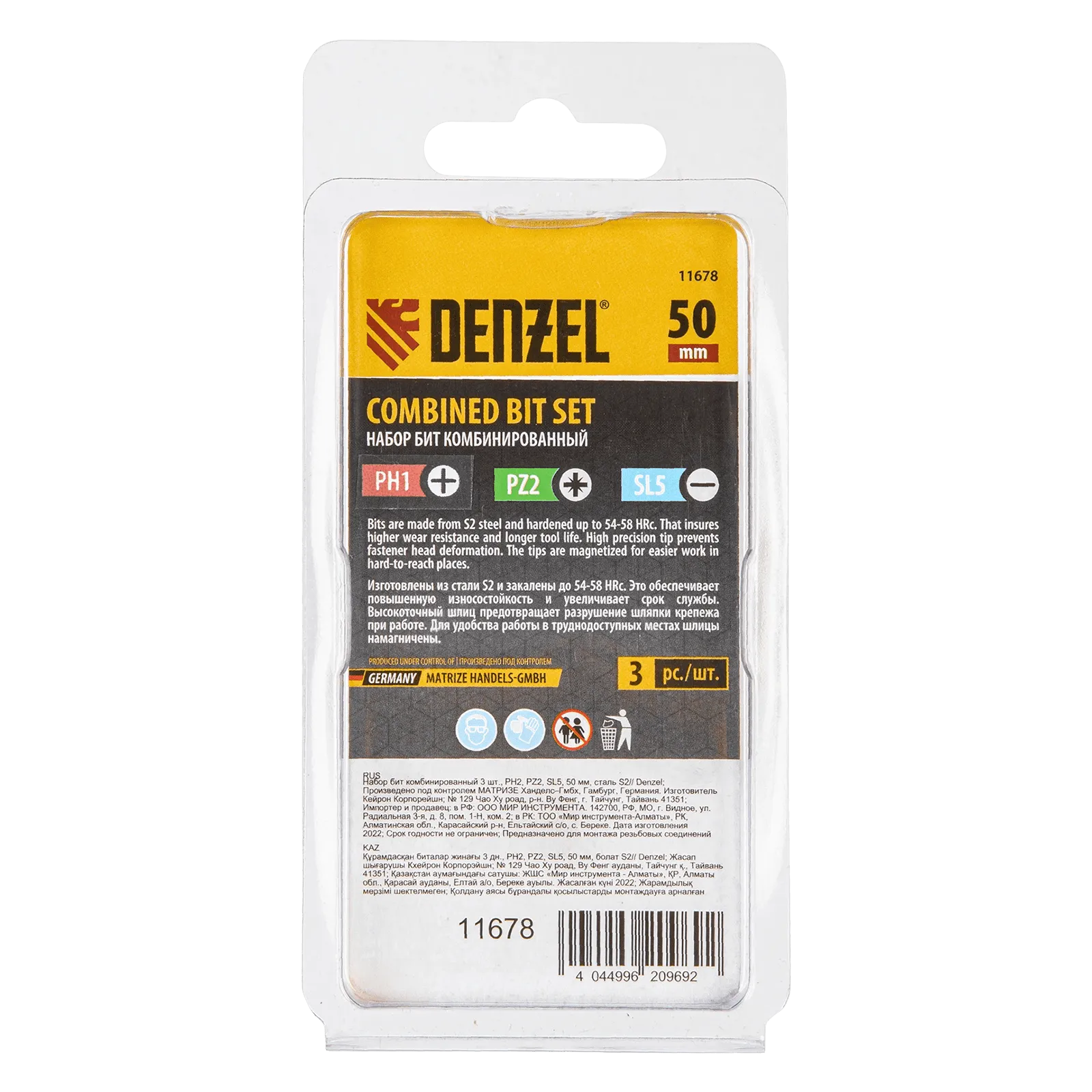 Комбинированный набор бит PH2 х 50 мм, PZ2 х 50 мм, SL50 х 50 мм Denzel 11678, из стали S2, состоит из 3-х наиболее востребованных насадок с хвостовиком 1/4" и предназначен для шуруповертов и отверток-адаптеров. Биты используются при монтаже и демонтаже большинства саморезов по дереву, шурупов и др. За счет оптимальной геометрии биты способны ввинтить и извлечь большое количество крепежа без потери рабочих свойств.