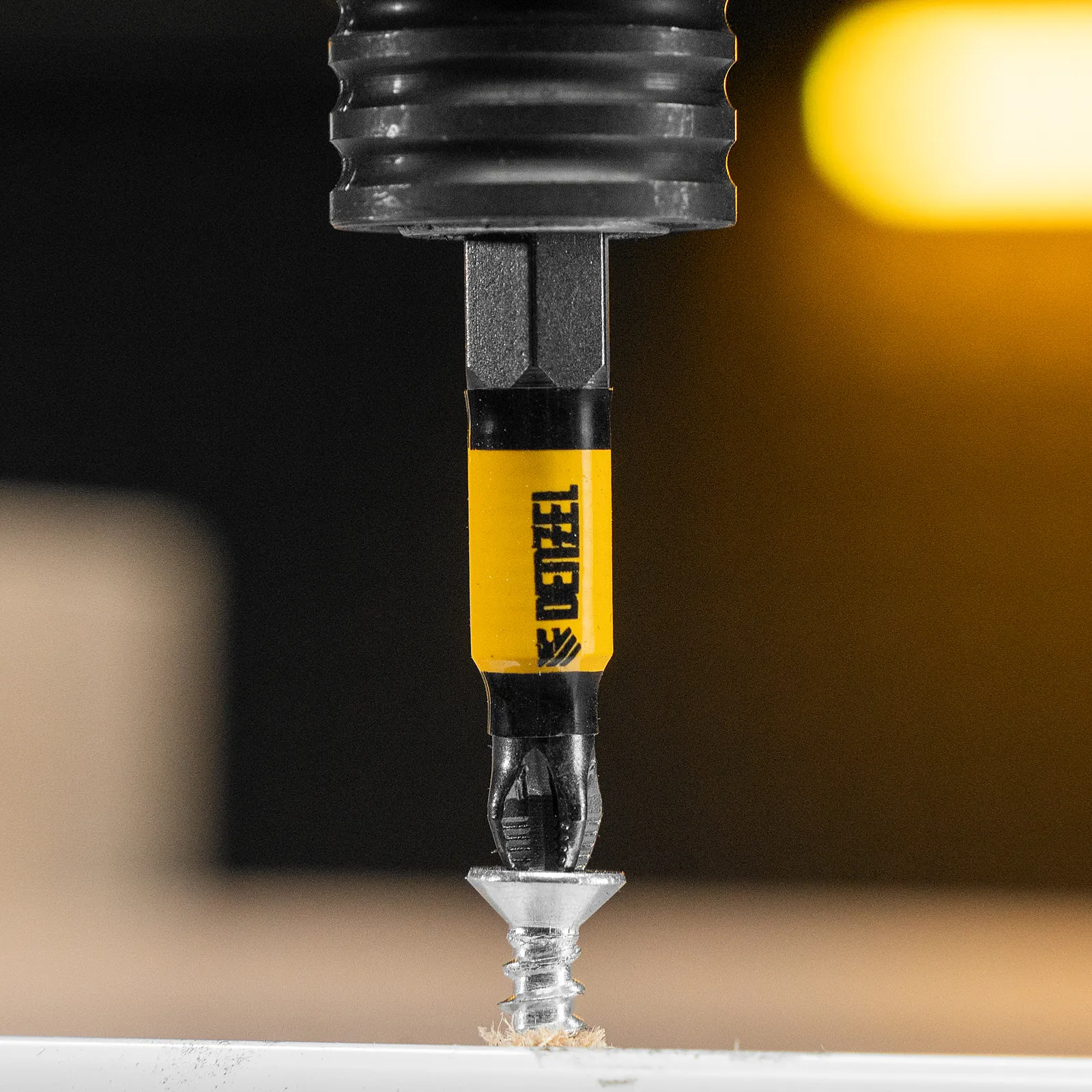 - Удобная эксплуатация — намагниченный шлиц облегчает работу и позволяет направлять шуруповерт с насаженным крепежом одной рукой, а другой придерживать закрепляемую деталь.