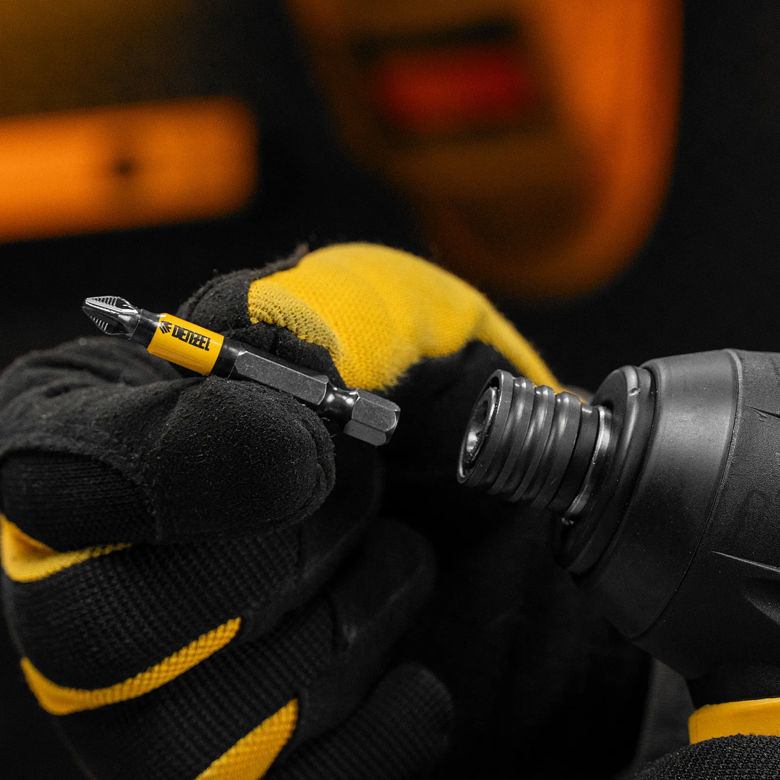 - Защита от подделок — цветное кольцо с логотипом ТМ Denzel на каждой бите подтверждает оригинальность товара.