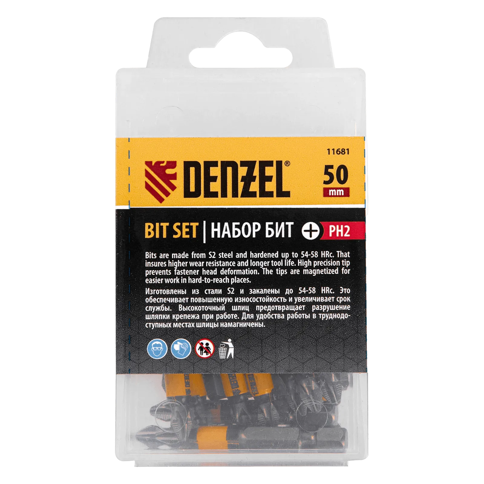 - Долговечность и износоустойчивость — биты изготовлены из японской легированной стали S2 повышенной прочности, закаленной до твердости 58 HRC.