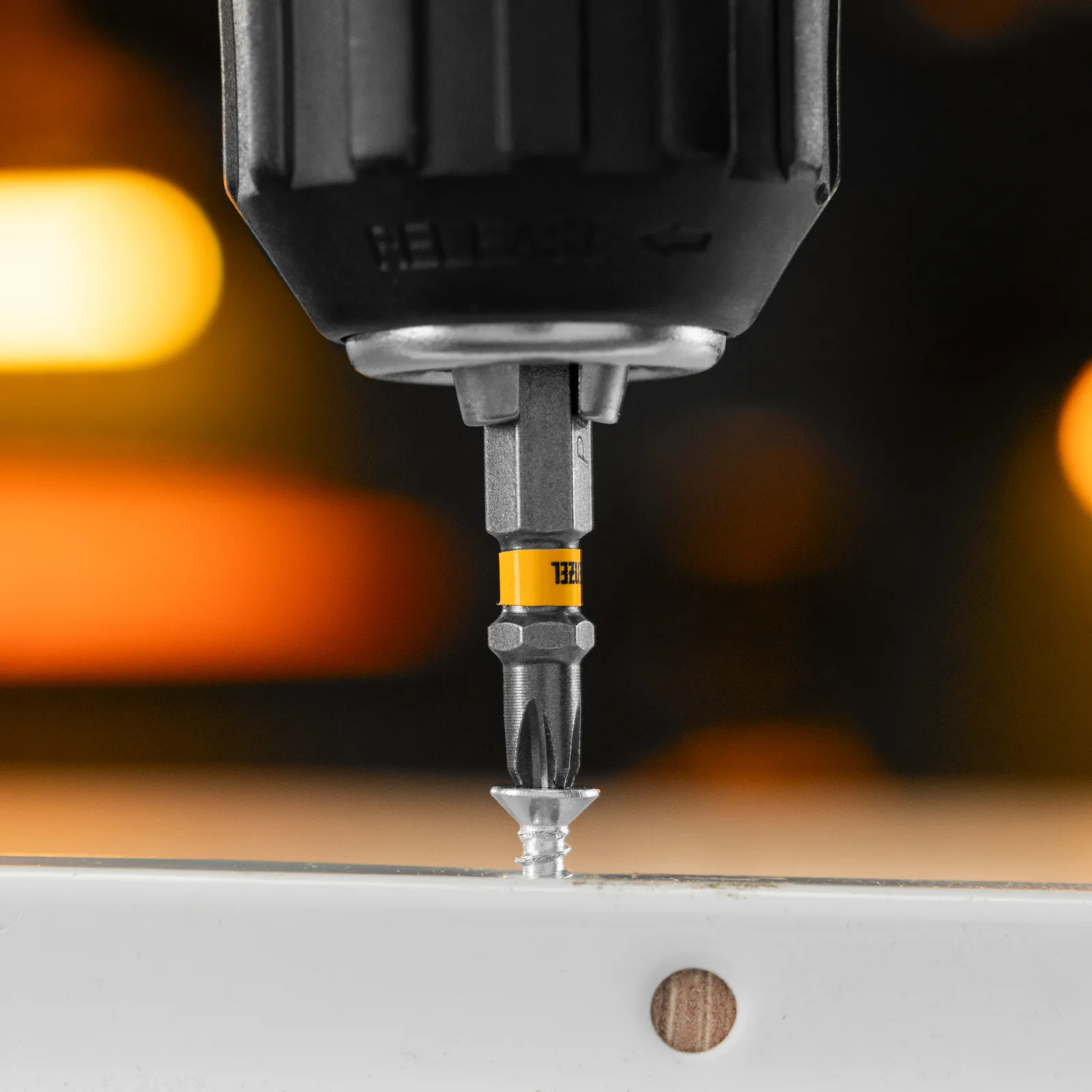 - Эффективная работа — биты не проскальзывают в головке крепежа, их грани не «слизываются», что усиливает контроль при работе с саморезами по дереву и значительно увеличивает срок службы насадок.