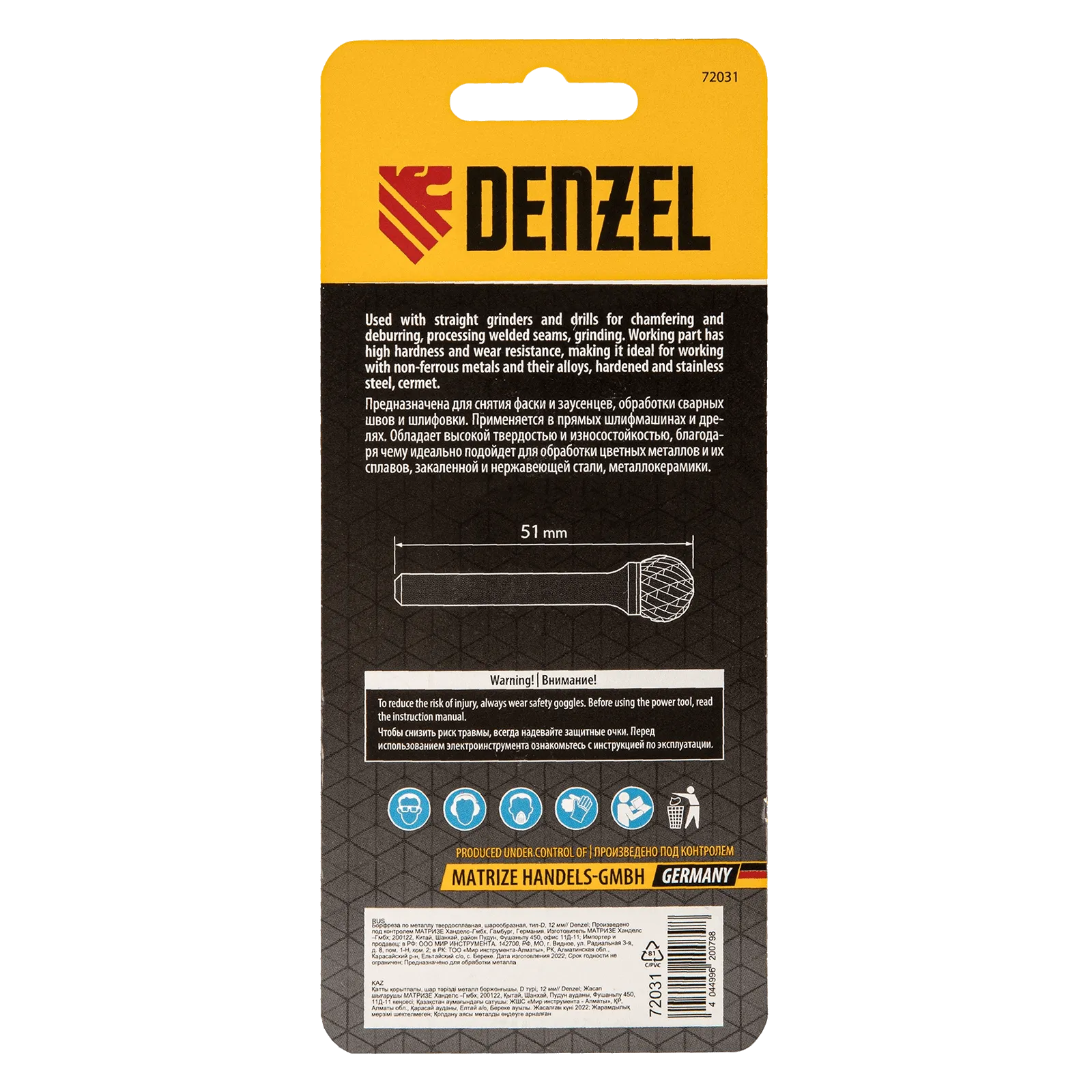 Твердосплавная борфреза Denzel 72031 с шарообразной рабочей частью (тип D), диаметром 12 мм, предназначена для шлифовальных работ по металлу. Используется для обработки закаленной и нержавеющей стали, чугуна, титана, латуни, меди, бронзы. Подходит для шлифовки искусственного камня и металлокерамики. Режущая часть в форме сферы особенно удобна для обработки радиусных пазов и внутренних отверстий. Также борфреза позволяет удалять заусенцы и возвращать первоначальный вид гравировке. Оснастка устанавливается на дрель или прямошлифовальную машину.
