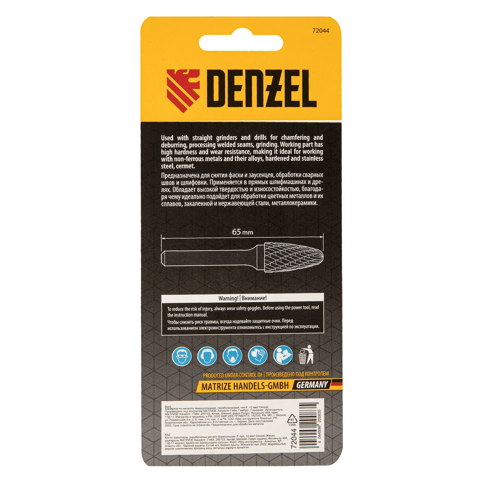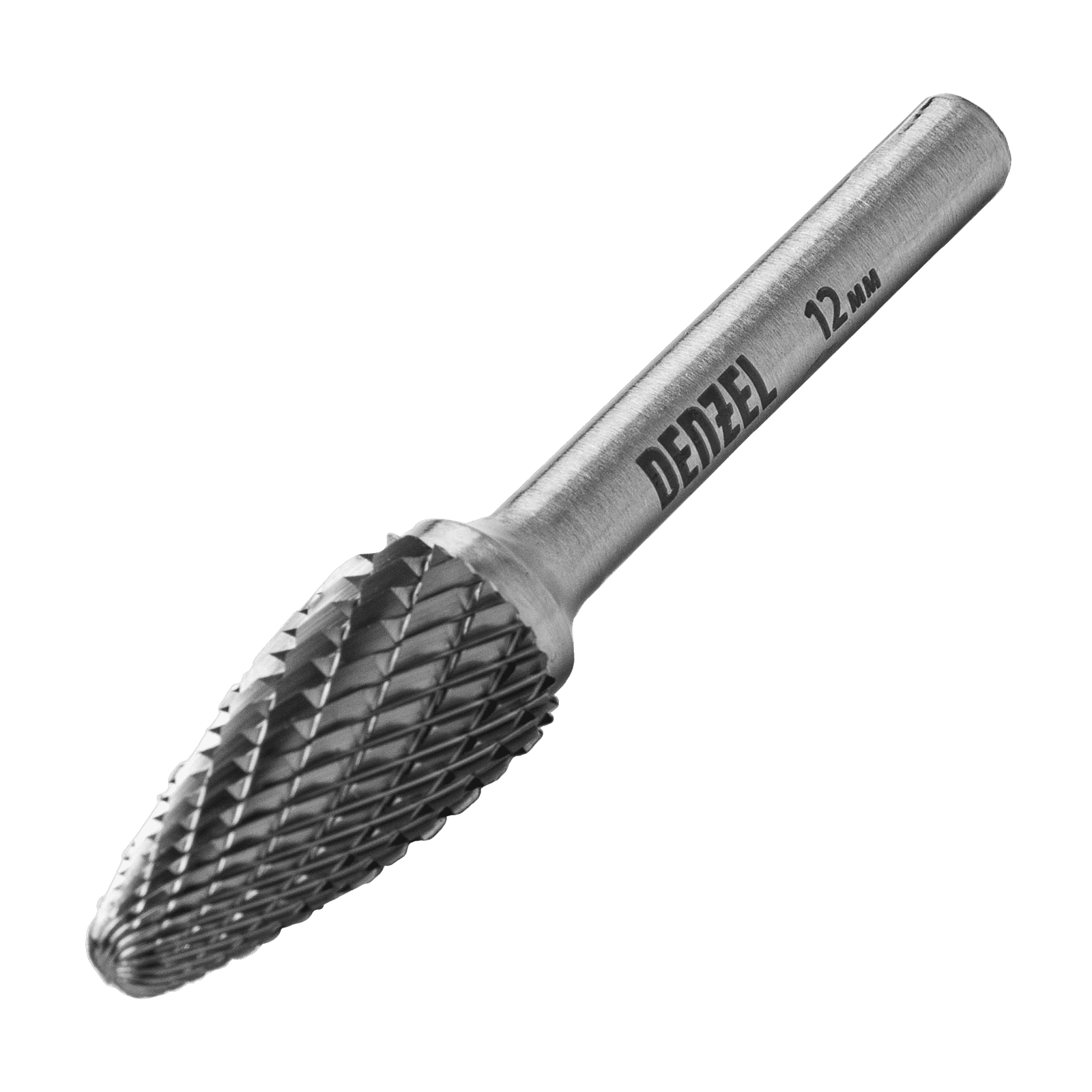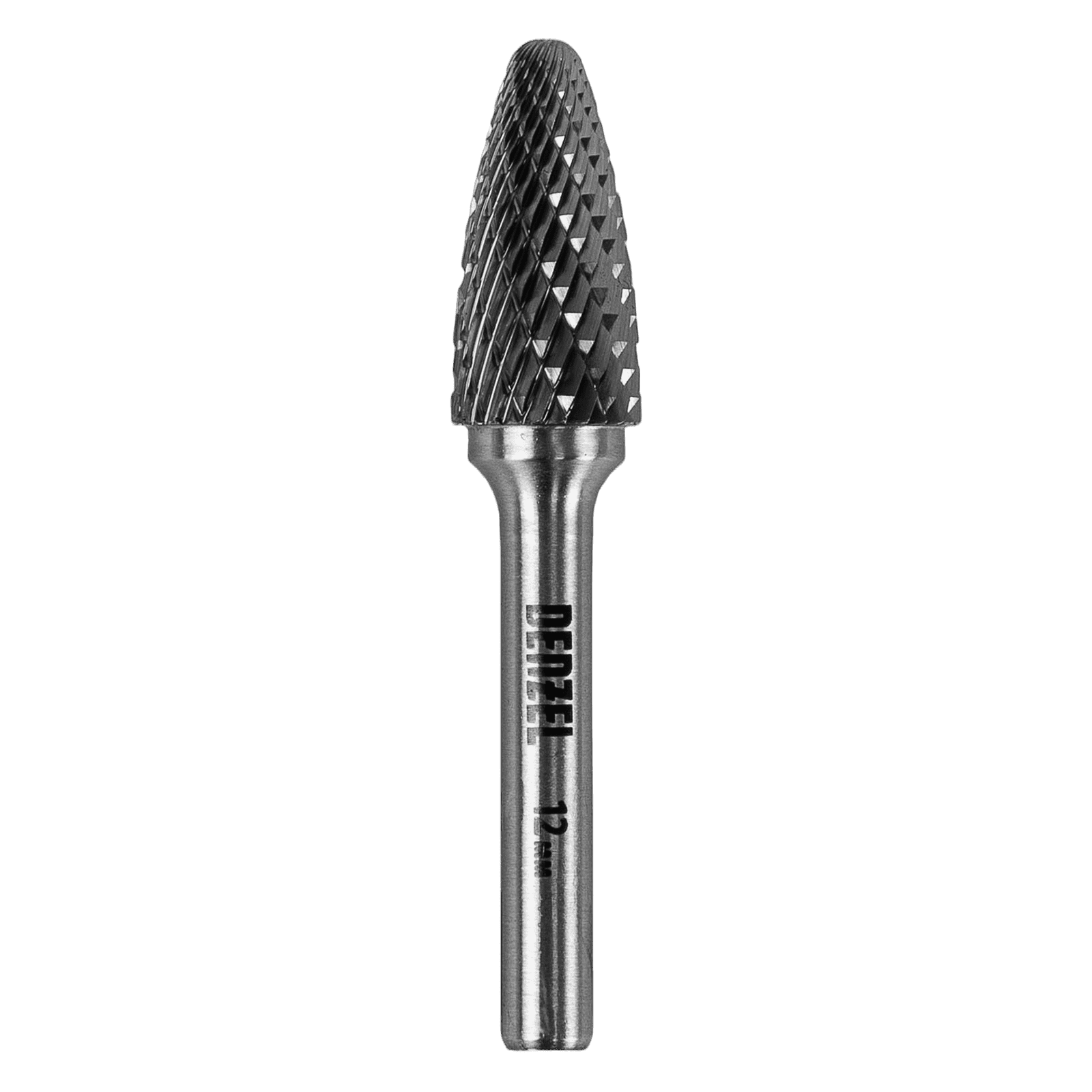 Твердосплавная борфреза Denzel 72044 с параболической режущей частью (тип F), диаметром 12 мм, устанавливается на дрель или прямошлифовальную машину и предназначена для шлифовальных работ по металлу. Позволяет обрабатывать закаленную и нержавеющую сталь, латунь, бронзу, медь, чугун, титан, а также металлокерамику и искусственный камень. Рабочая часть в форме параболы с закругленной головкой удобна для шлифовки формованных деталей с плавными контурами и обработки сопряжений. Также при помощи борфрезы можно разделывать кромки, снимать заусенцы, обрабатывать сварные швы. Подходит оснастка и для восстановления гравировки.