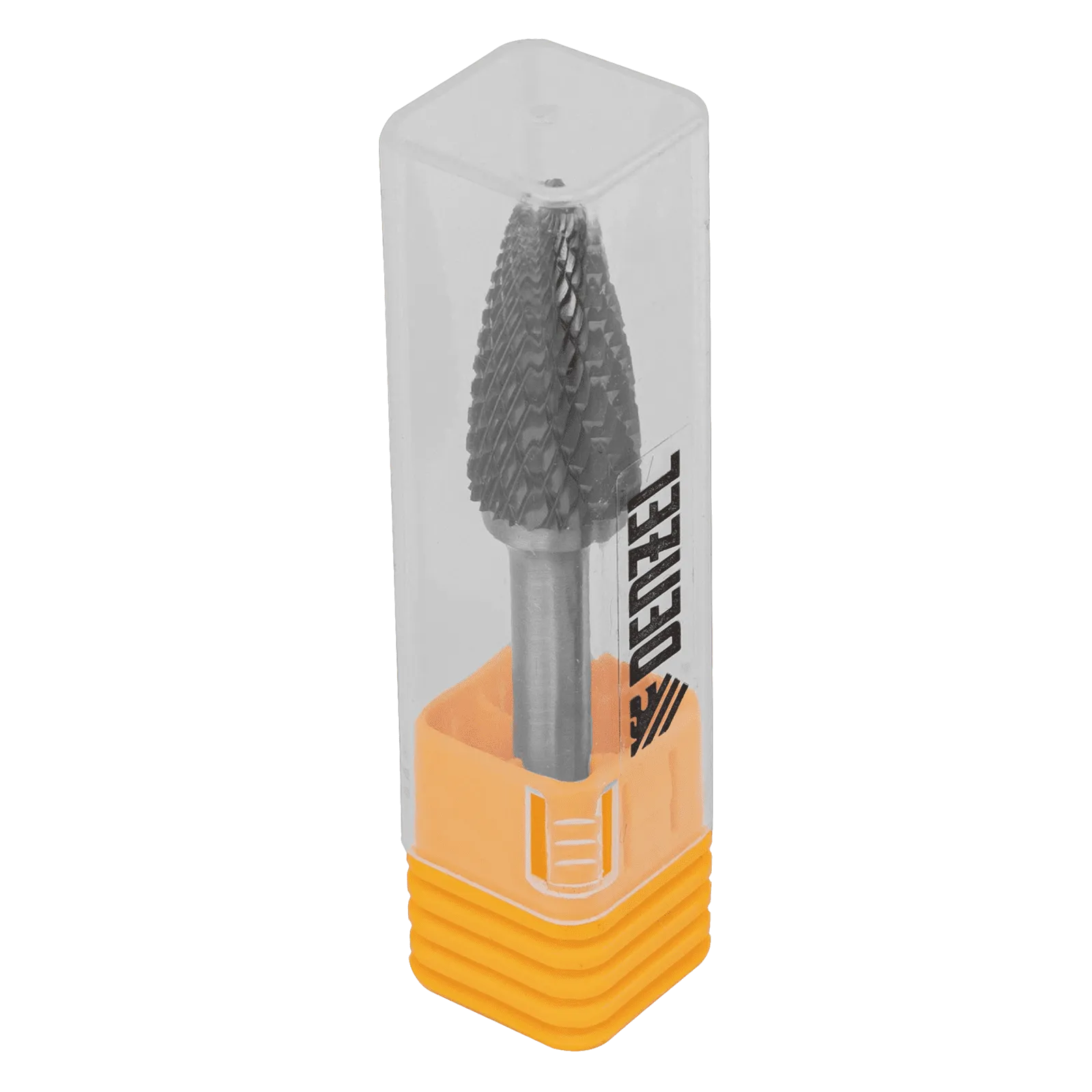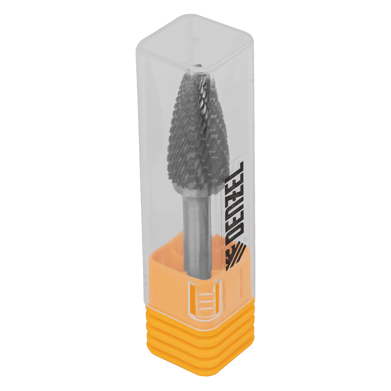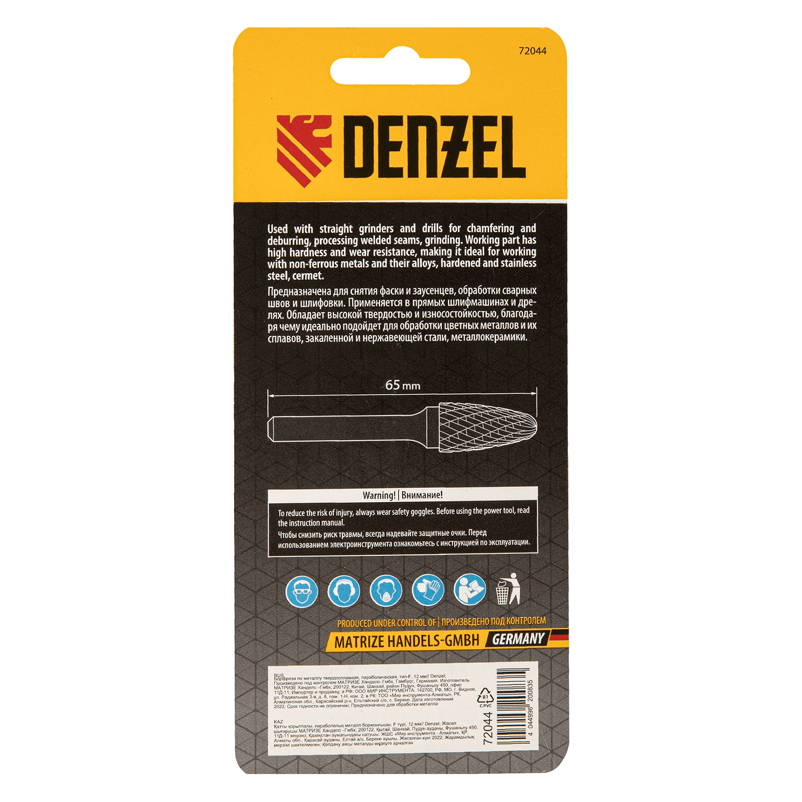 Твердосплавная борфреза Denzel 72044 с параболической режущей частью (тип F), диаметром 12 мм, устанавливается на дрель или прямошлифовальную машину и предназначена для шлифовальных работ по металлу. Позволяет обрабатывать закаленную и нержавеющую сталь, латунь, бронзу, медь, чугун, титан, а также металлокерамику и искусственный камень. Рабочая часть в форме параболы с закругленной головкой удобна для шлифовки формованных деталей с плавными контурами и обработки сопряжений. Также при помощи борфрезы можно разделывать кромки, снимать заусенцы, обрабатывать сварные швы. Подходит оснастка и для восстановления гравировки.