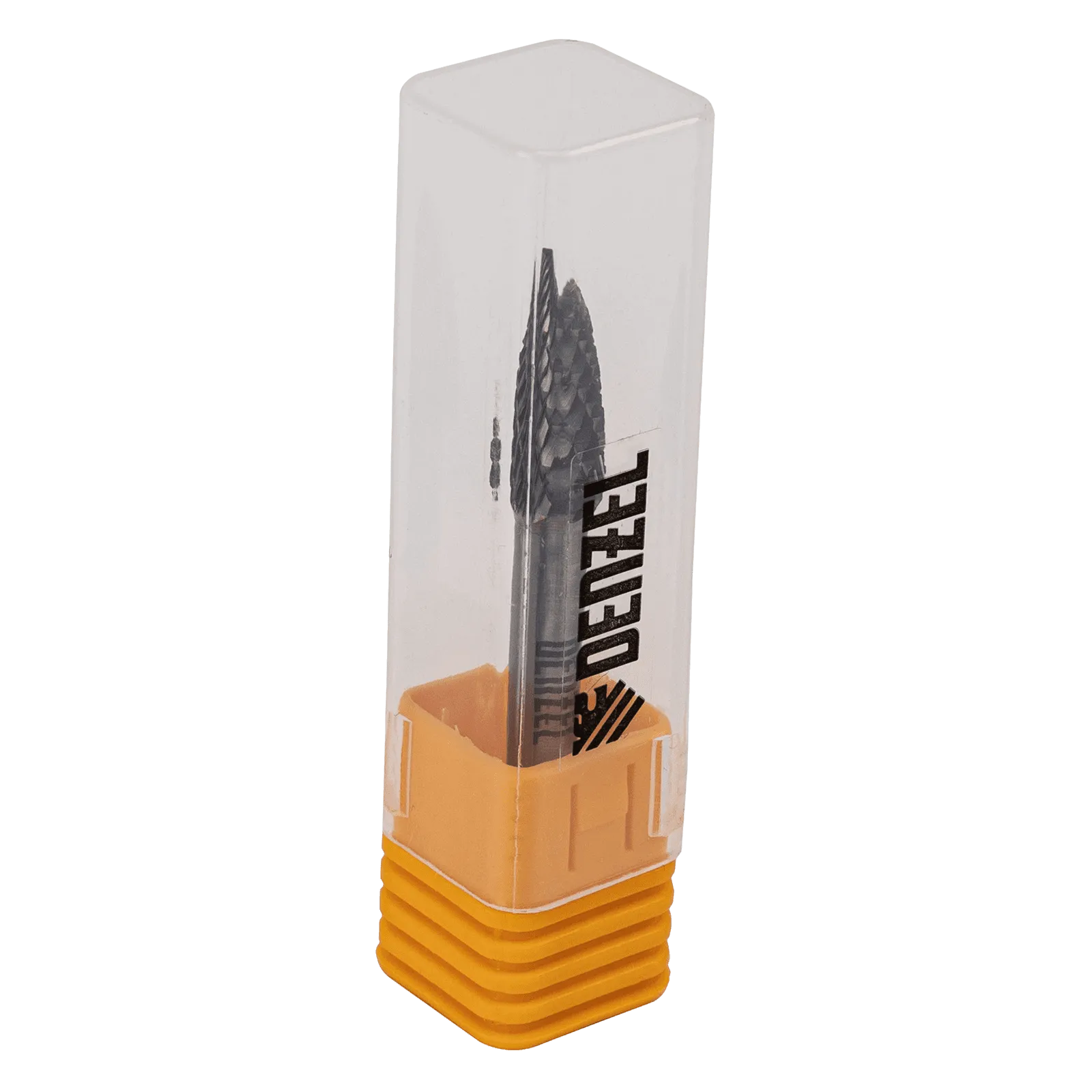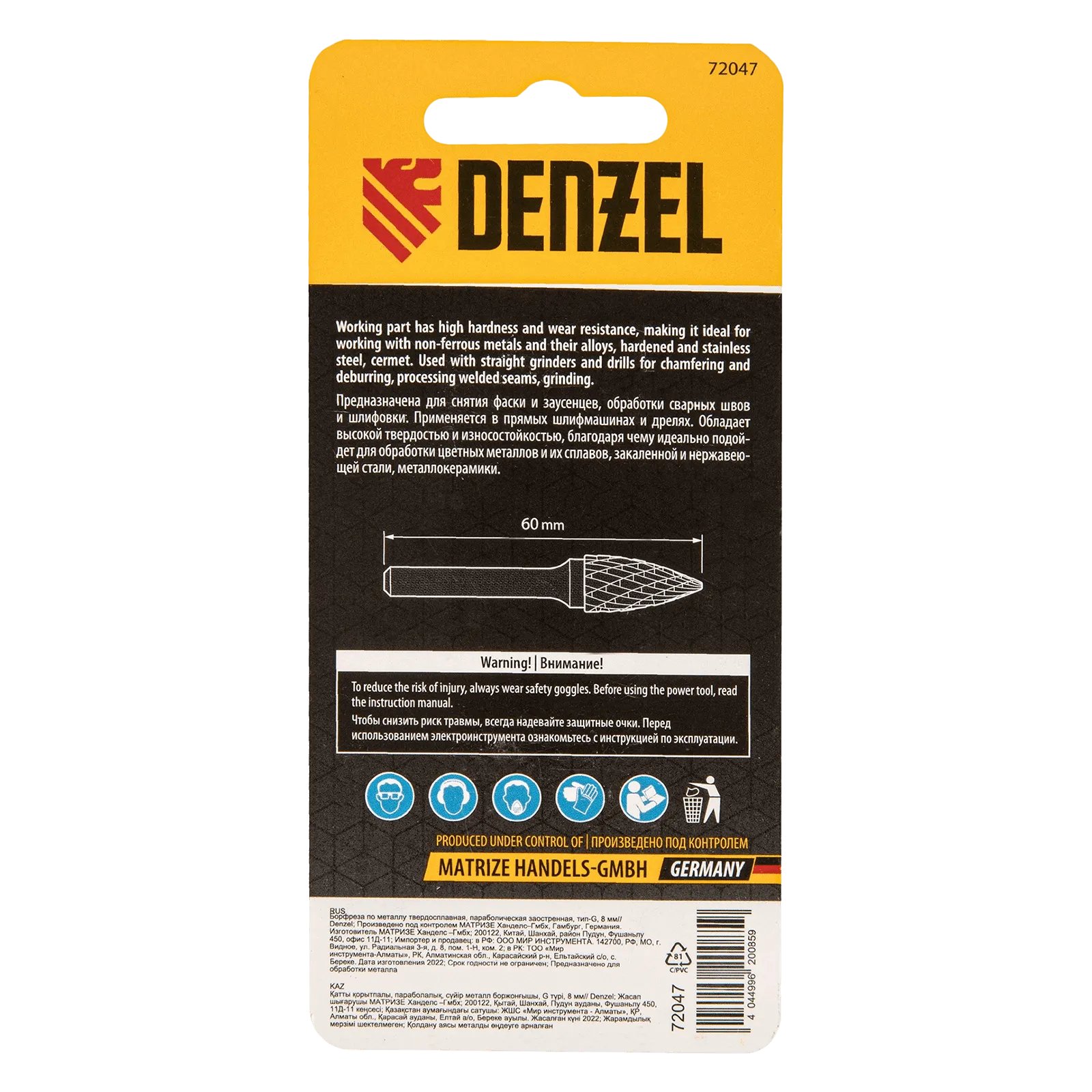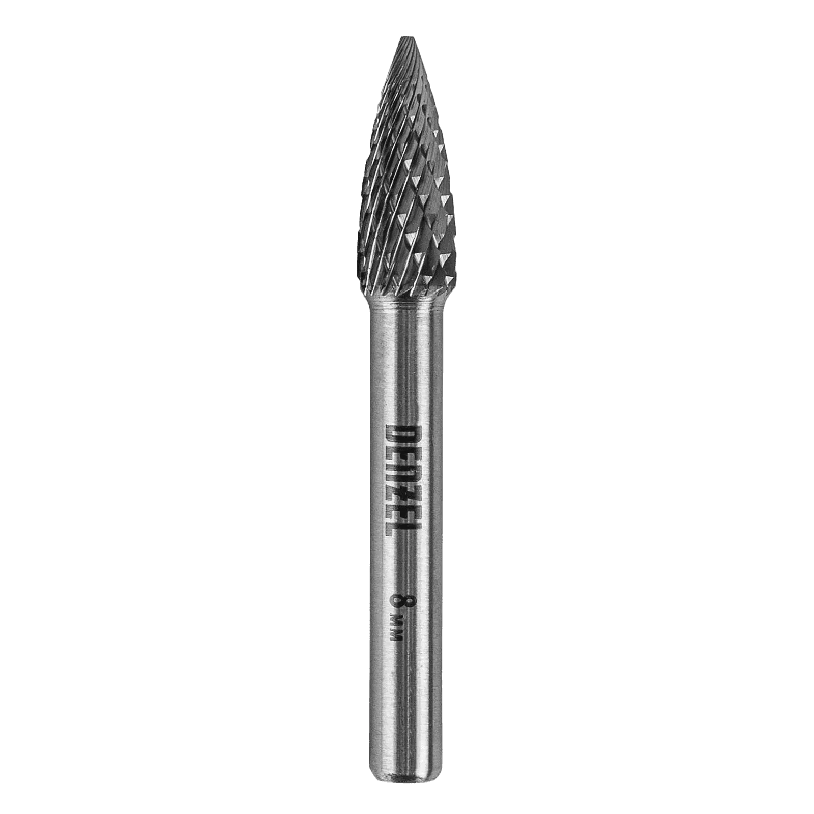 Твердосплавная борфреза по металлу Denzel 72047 с параболической заостренной рабочей частью (тип G), диаметром 8 мм, — оснастка для дрели и прямошлифовальной машины. Предназначена для выполнения работ по закаленной и нержавеющей стали, чугуну, бронзе, меди, латуни, титану. Также позволяет обрабатывать искусственный камень и металлокерамику. Заостренная режущая часть оптимальна для шлифовки радиусных поверхностей сложной формы, удаления заусенцев в узких отверстиях, формирования точных углов.
