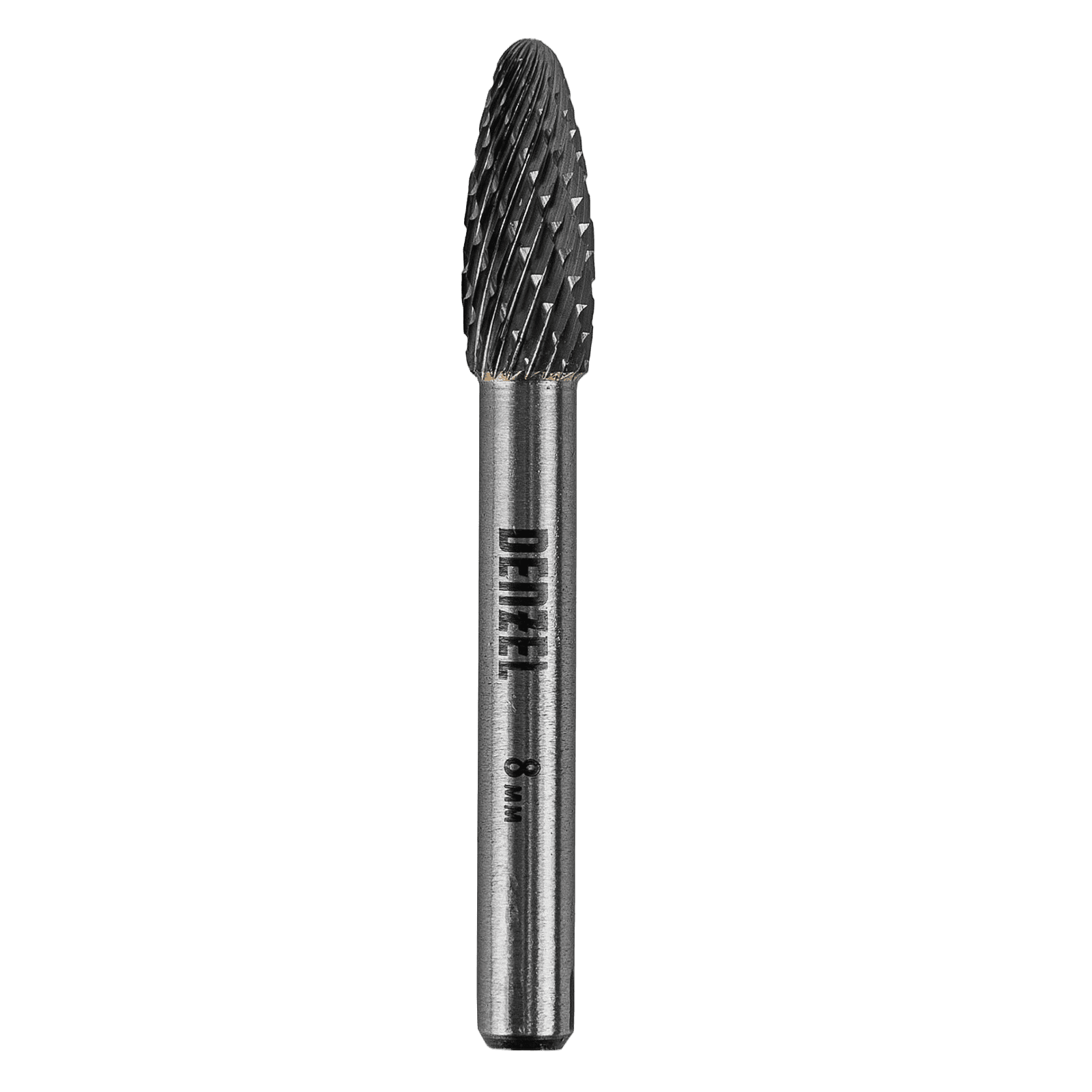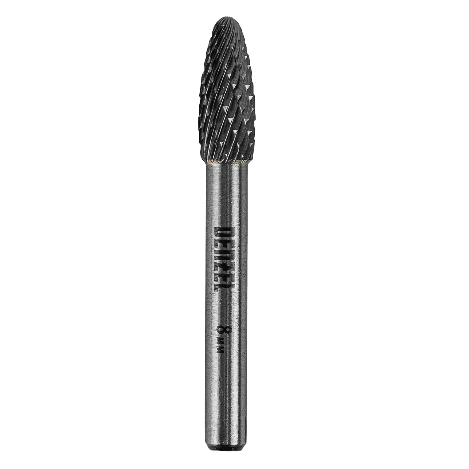 Твердосплавная борфреза Denzel 72061 с эллипсообразной рабочей частью (тип H), диаметром 8 мм, — оснастка для дрели и прямошлифовальной машины, предназначенная для выполнения работ по металлу. Эффективно обрабатывает нержавеющую и закаленную сталь, чугун, титан, бронзу, медь, латунь, а также металлокерамику и искусственный камень. Пламевидная режущая часть удобна для шлифовки деталей сложной формы. Борфреза подходит также для восстановления гравировки.