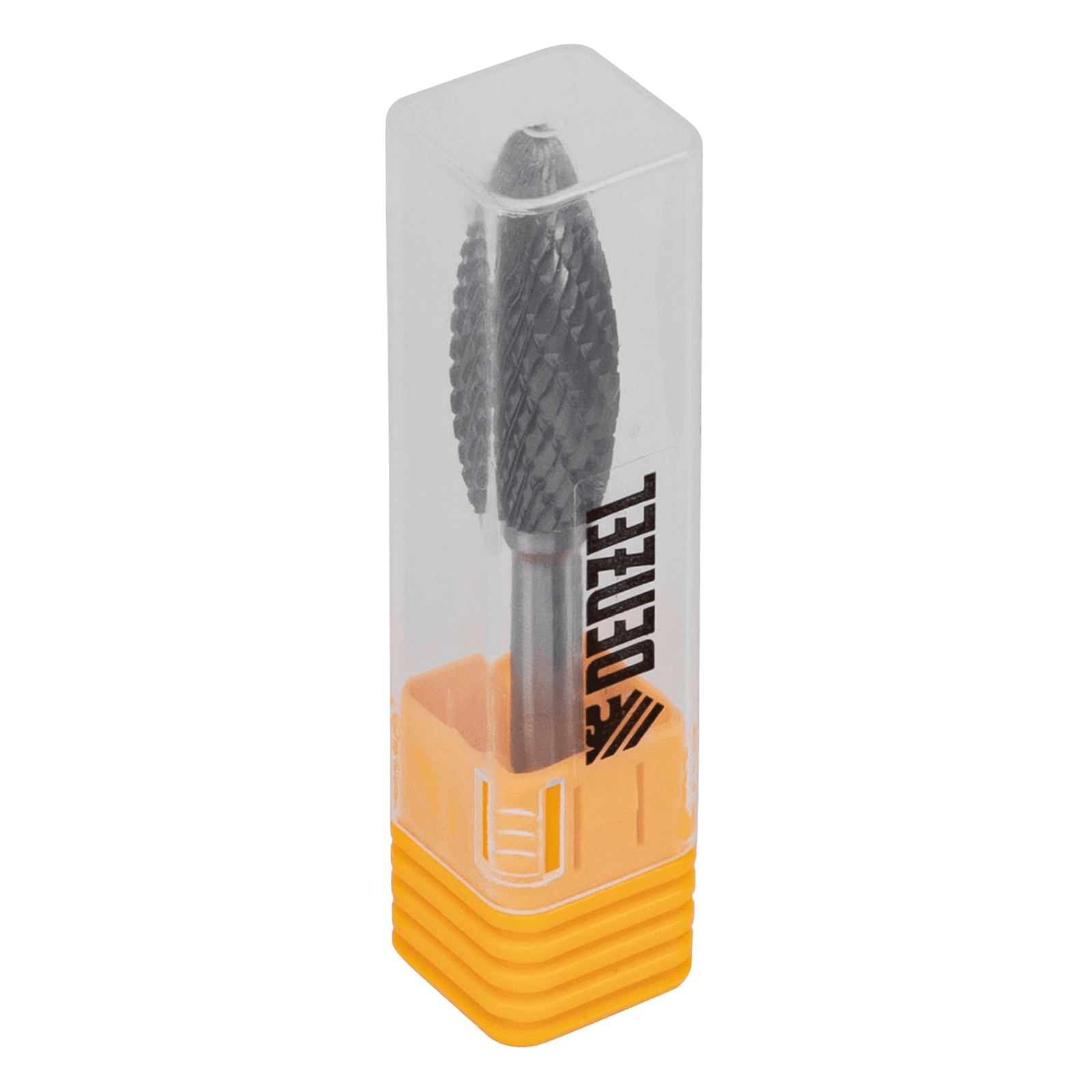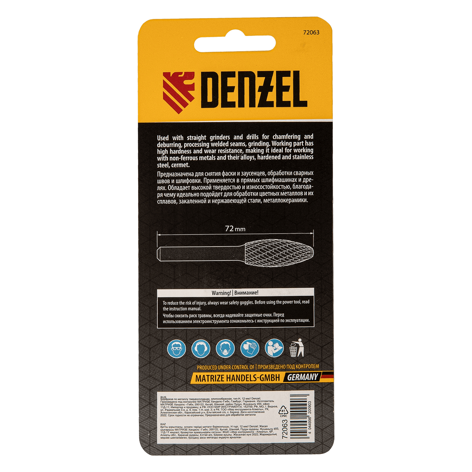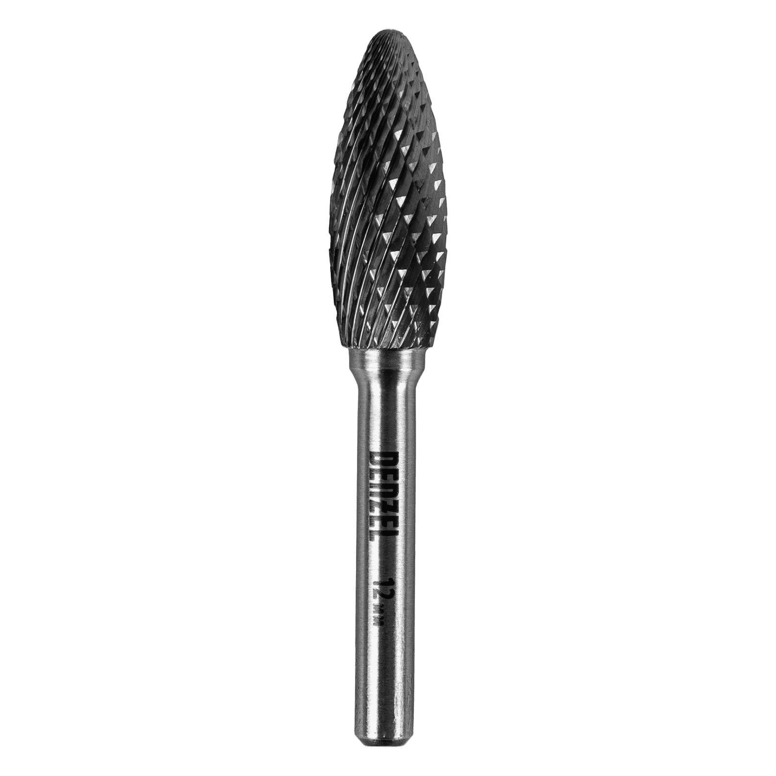 Твердосплавная борфреза Denzel 72063 с эллипсообразной рабочей частью (тип H), диаметром 12 мм, — оснастка для дрели и прямошлифовальной машины, предназначенная для выполнения работ по металлу. Эффективно обрабатывает нержавеющую и закаленную сталь, чугун, титан, бронзу, медь, латунь, а также металлокерамику и искусственный камень. Пламевидная режущая часть удобна для шлифовки деталей сложной формы. Борфреза подходит также для восстановления гравировки.