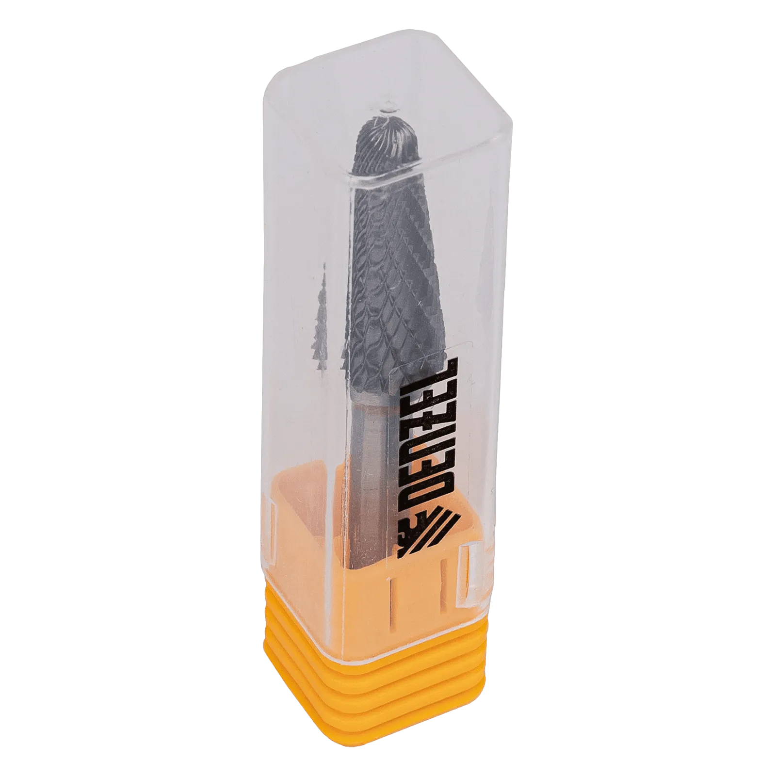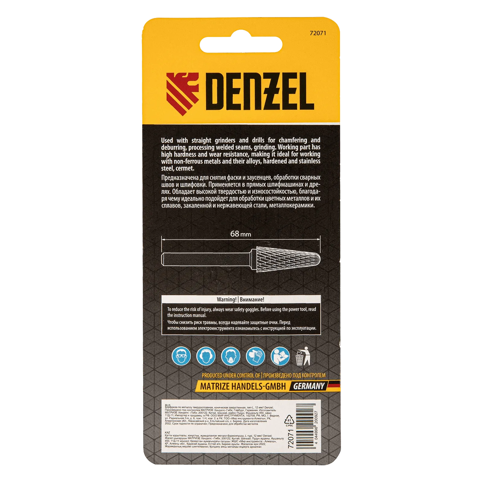 Твердосплавная борфреза Denzel 72071 с конической закругленной режущей частью (тип L), диаметром 12 мм, предназначена для выполнения работ по металлу. Используется для шлифовки, снятия фасок, удаления заусенцев, зачистки сварных швов. восстановления гравировки. Оптимальна для обработки труднодоступных мест. Оснастка устанавливается на дрель или прямошлифовальную машину, подходит для работы с закаленной и нержавеющей сталью, чугуном, бронзой, медью, латунью, титаном, а также металлокерамикой и искусственным камнем.