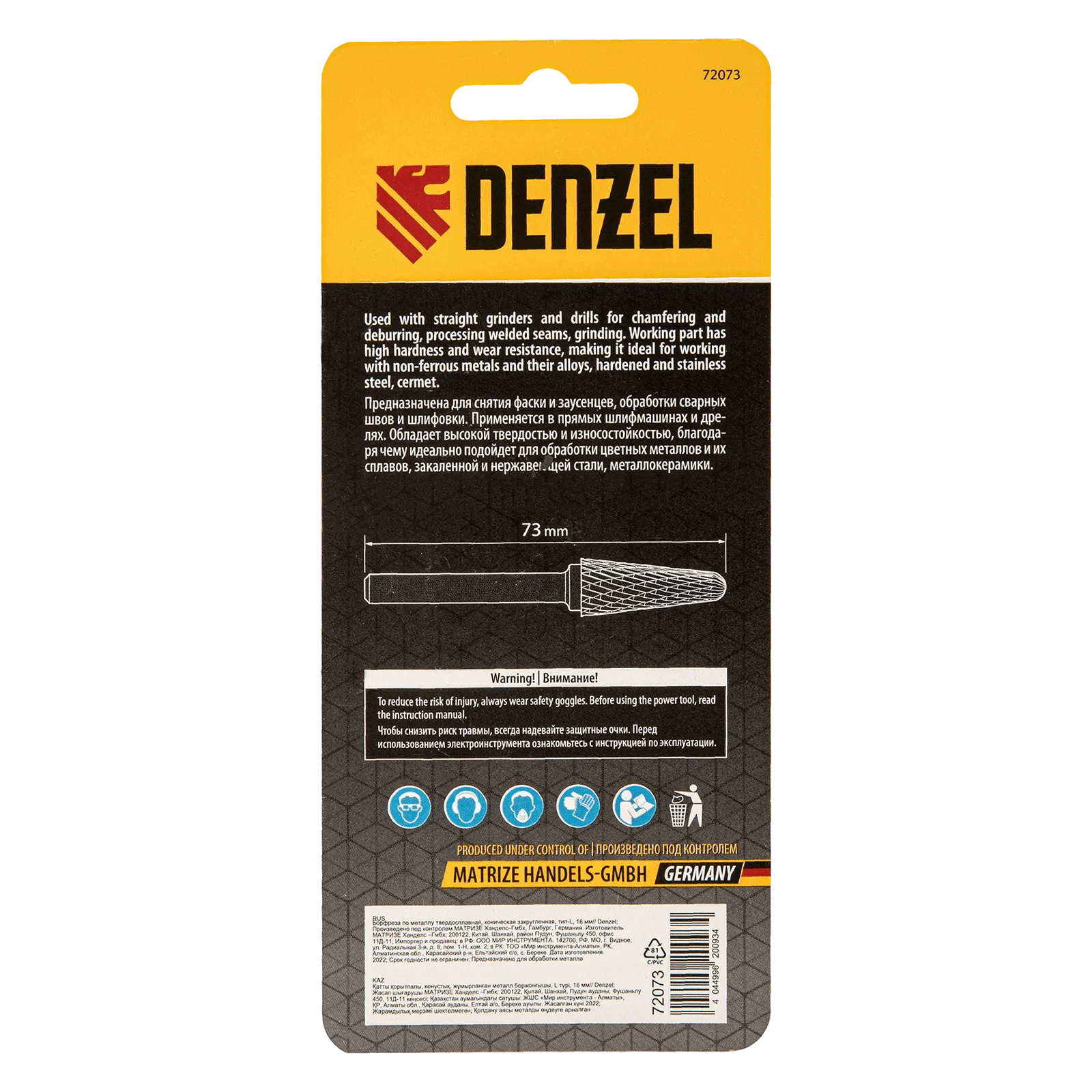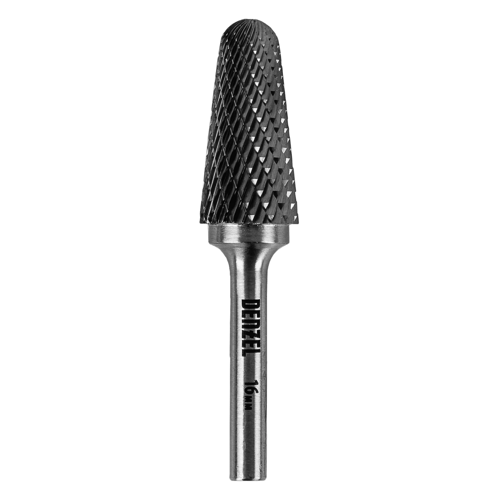 Твердосплавная борфреза Denzel 72073 с конической закругленной режущей частью (тип L), диаметром 16 мм, предназначена для выполнения работ по металлу. Используется для шлифовки, снятия фасок, удаления заусенцев, зачистки сварных швов. восстановления гравировки. Оптимальна для обработки труднодоступных мест. Оснастка устанавливается на дрель или прямошлифовальную машину, подходит для работы с закаленной и нержавеющей сталью, чугуном, бронзой, медью, латунью, титаном, а также металлокерамикой и искусственным камнем.