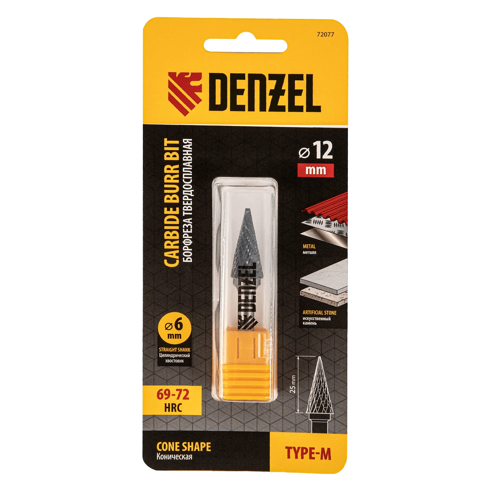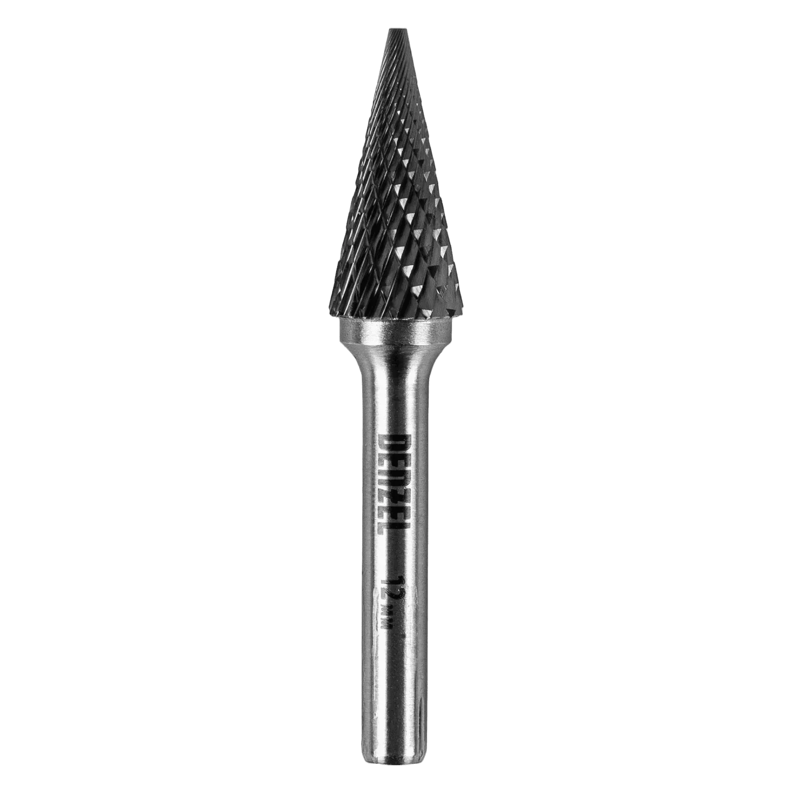 Твердосплавная борфреза по металлу Denzel 72077 с конической рабочей частью (тип M), диаметром 12 мм, — оснастка для дрели и прямошлифовальной машины. Позволяет снимать фаски и удалять заусенцы, идеальна для обработки поверхностей сложной формы, конических отверстий и пазов, а также выполнения точных работ. Подходит для шлифовки деталей из закаленной и нержавеющей стали, чугуна, бронзы, меди, латуни, титана, а также металлокерамики и искусственного камня.