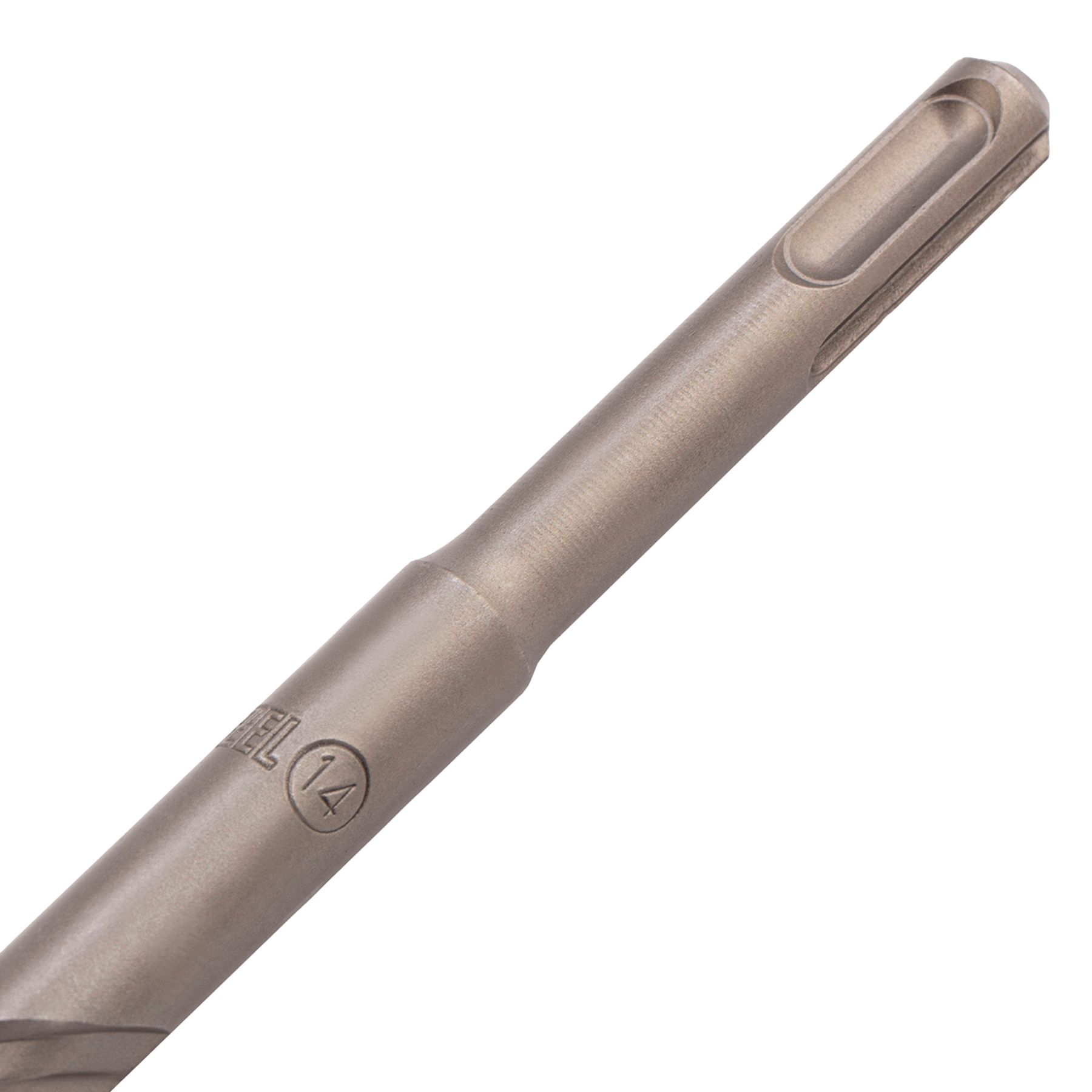 - Эффективный отвод шлама — двойная спираль и канавка с дополнительным желобом обеспечивают быстрое удаление пыли, что предотвращает перегрев рабочей части и продлевает срок службы бура.
