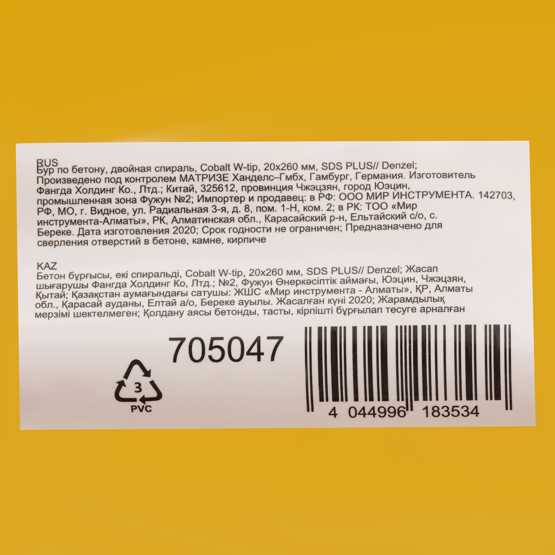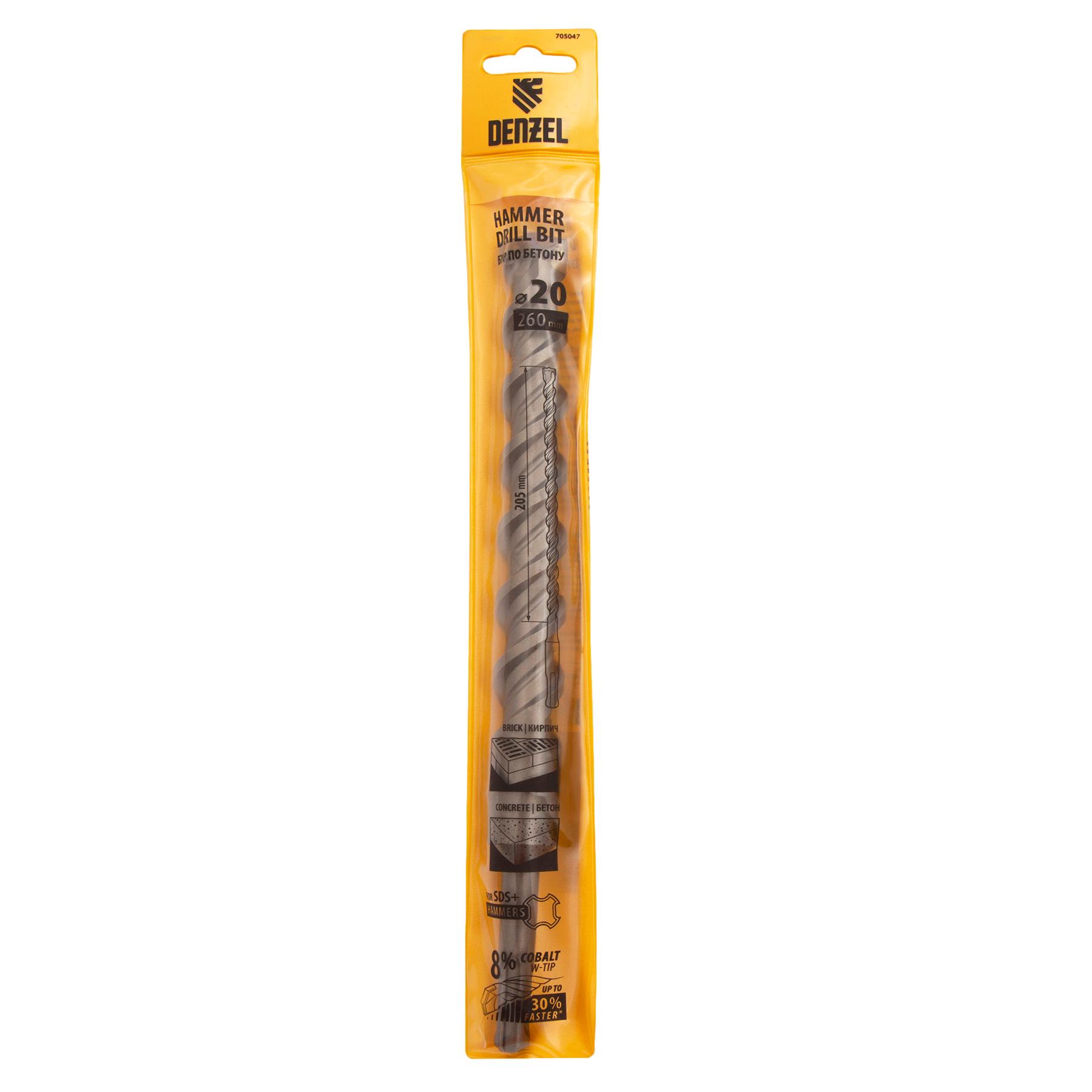 Бур по бетону Denzel Cobalt W-tip 705047 размером 20 х 260 мм, с хвостовиком SDS-plus и двойной спиралью, предназначен для сверления бетона, кирпича и камня. Используется в качестве оснастки для перфораторов с патроном SDS-plus. Бур оптимален для проведения строительных, ремонтных, монтажных работ.