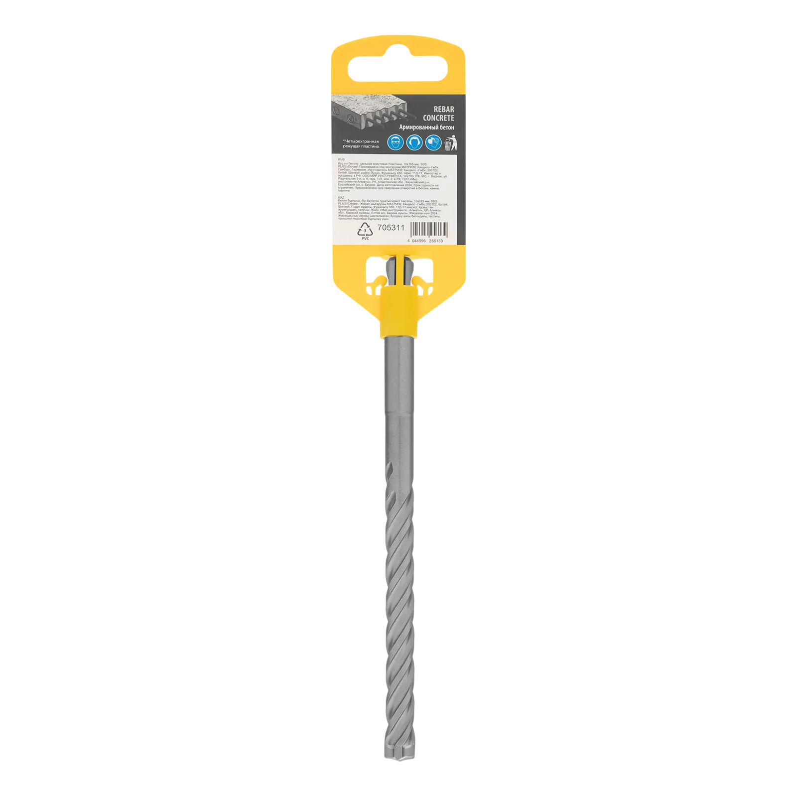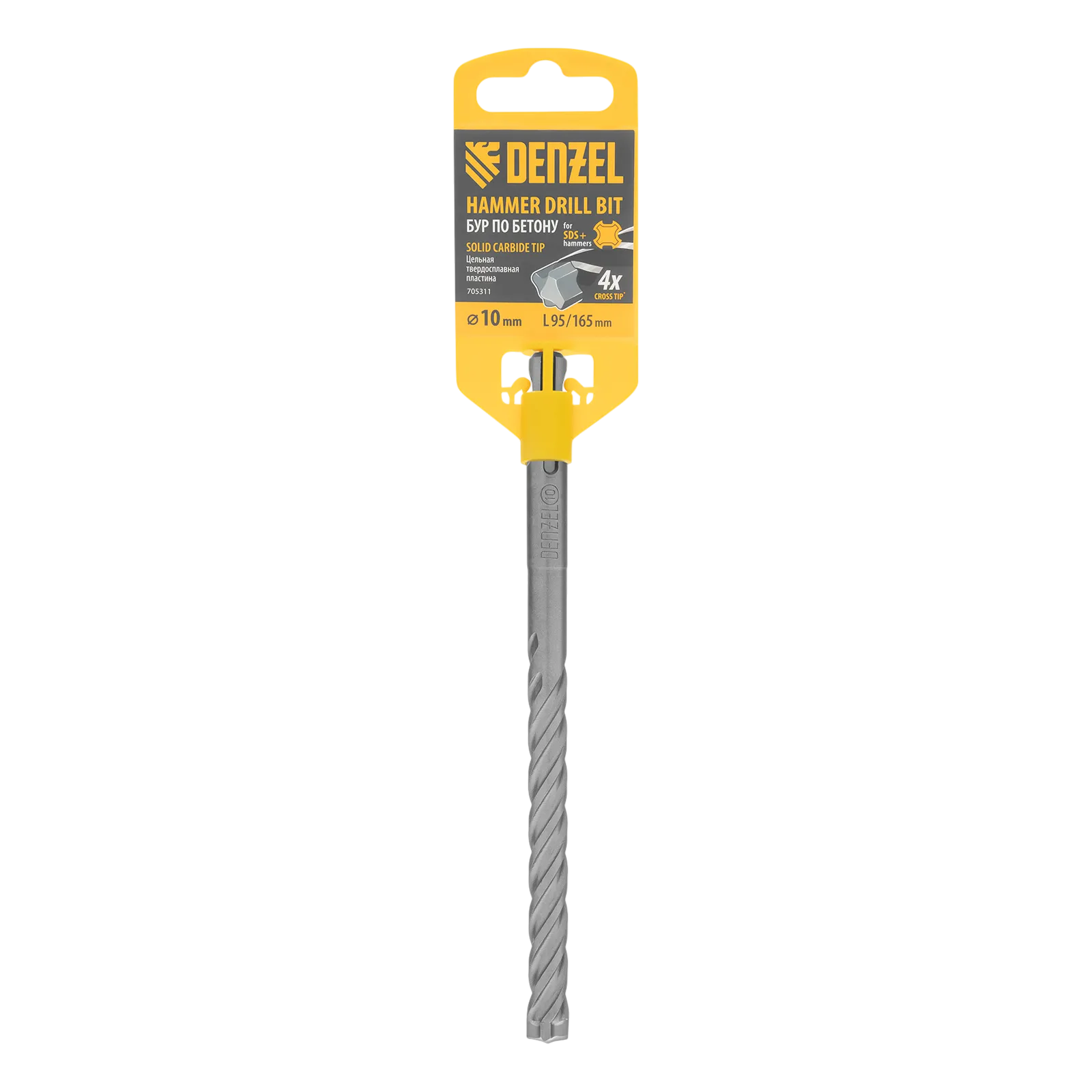 Бур по бетону Denzel 705311 длиной 165 мм, с цельной крестовой пластиной и хвостовиком SDS-plus — оснастка для перфораторов, предназначенная для получения отверстий диаметром 10 мм в бетоне, кирпиче, камне. Благодаря цельному карбидному наконечнику с 4 режущими кромками бур оптимален для работы с материалами высокой твердости, в том числе с армированным бетоном. Оснастка превосходит большинство аналогов по своим рабочим качествам и подходит для профессионального использования.