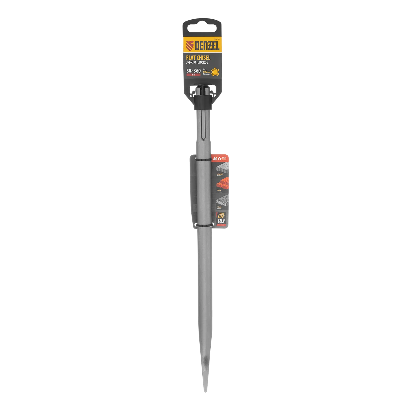 Плоское зубило Denzel 703135 размером 25 x 50 x 360 мм, из стали 40Cr, с хвостовиком SDS-max — оснастка для мощных, тяжелых перфораторов. Предназначено для эффективного выполнения ударных, демонтажных работ с твердыми материалами, такими как камень, бетон, кирпич. Пригодится на строительной площадке.