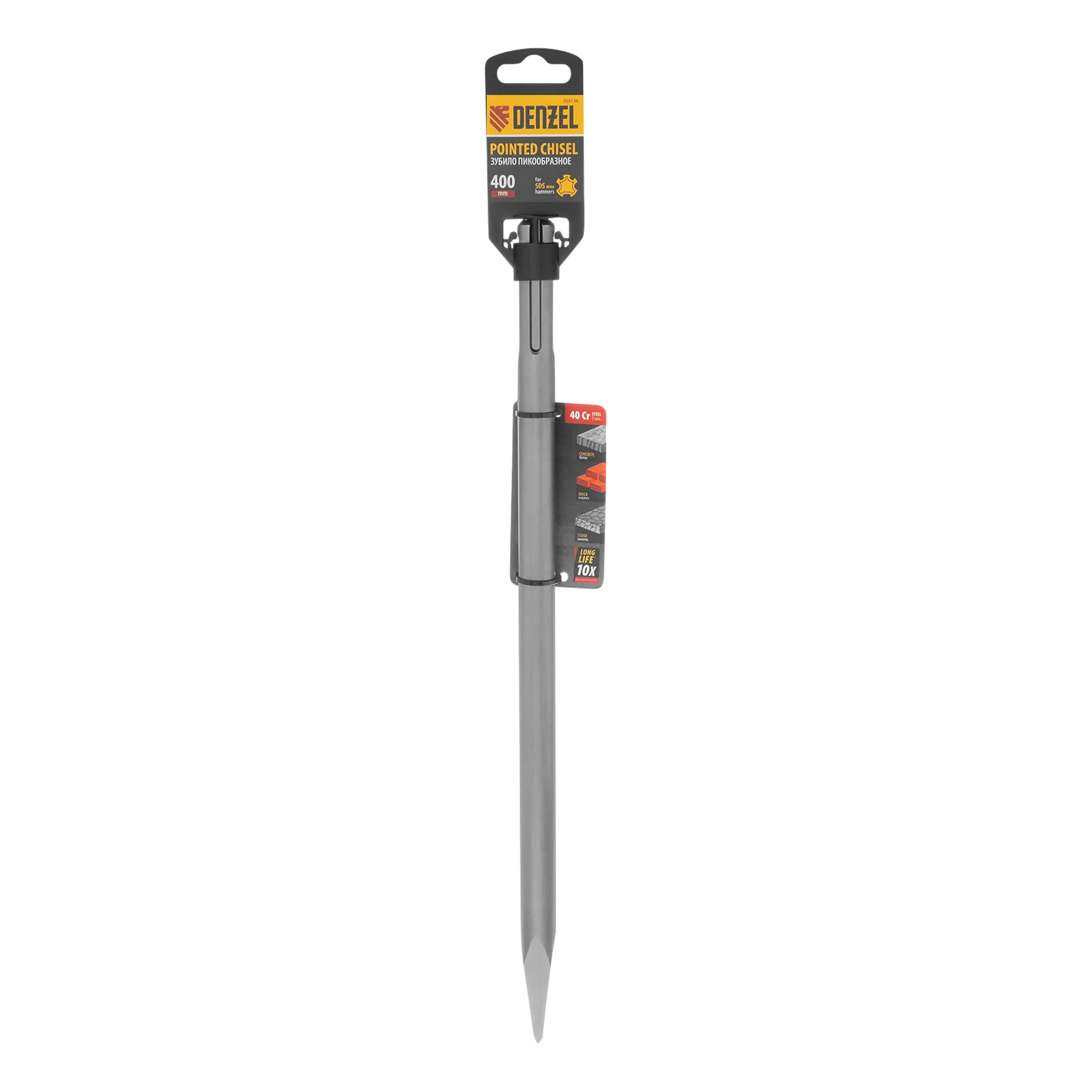 Пика Denzel 703136 размером 18 x 400 мм изготовлена из стали 40Cr и предназначена для установки в патрон под хвостовик SDS-max. Используется совместно с перфоратором для проведения ударных работ. Оптимальна для разрушения кирпичных, бетонных и каменных конструкций. Оснастка будет полезна на строительной площадке.