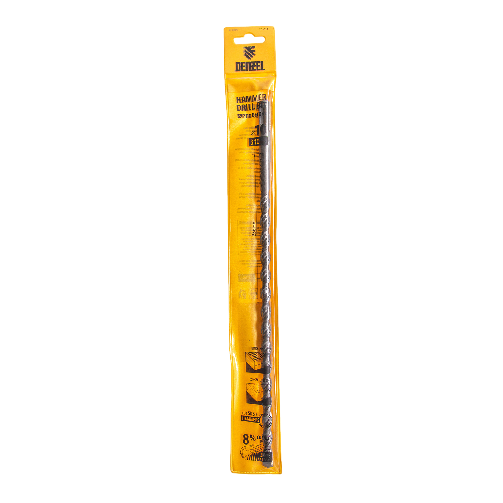 Бур по бетону Denzel Cobalt W-tip 705019 размером 10 х 310 мм, с хвостовиком SDS-plus и двойной спиралью, предназначен для сверления бетона, кирпича и камня. Используется в качестве оснастки для перфораторов с патроном SDS-plus. Бур оптимален для проведения строительных, ремонтных, монтажных работ.