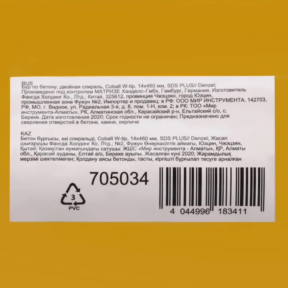 Бур по бетону Denzel Cobalt W-tip 705034 размером 14 х 460 мм, с хвостовиком SDS-plus и двойной спиралью, предназначен для сверления бетона, кирпича и камня. Используется в качестве оснастки для перфораторов с патроном SDS-plus. Бур оптимален для проведения строительных, ремонтных, монтажных работ.
